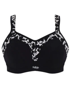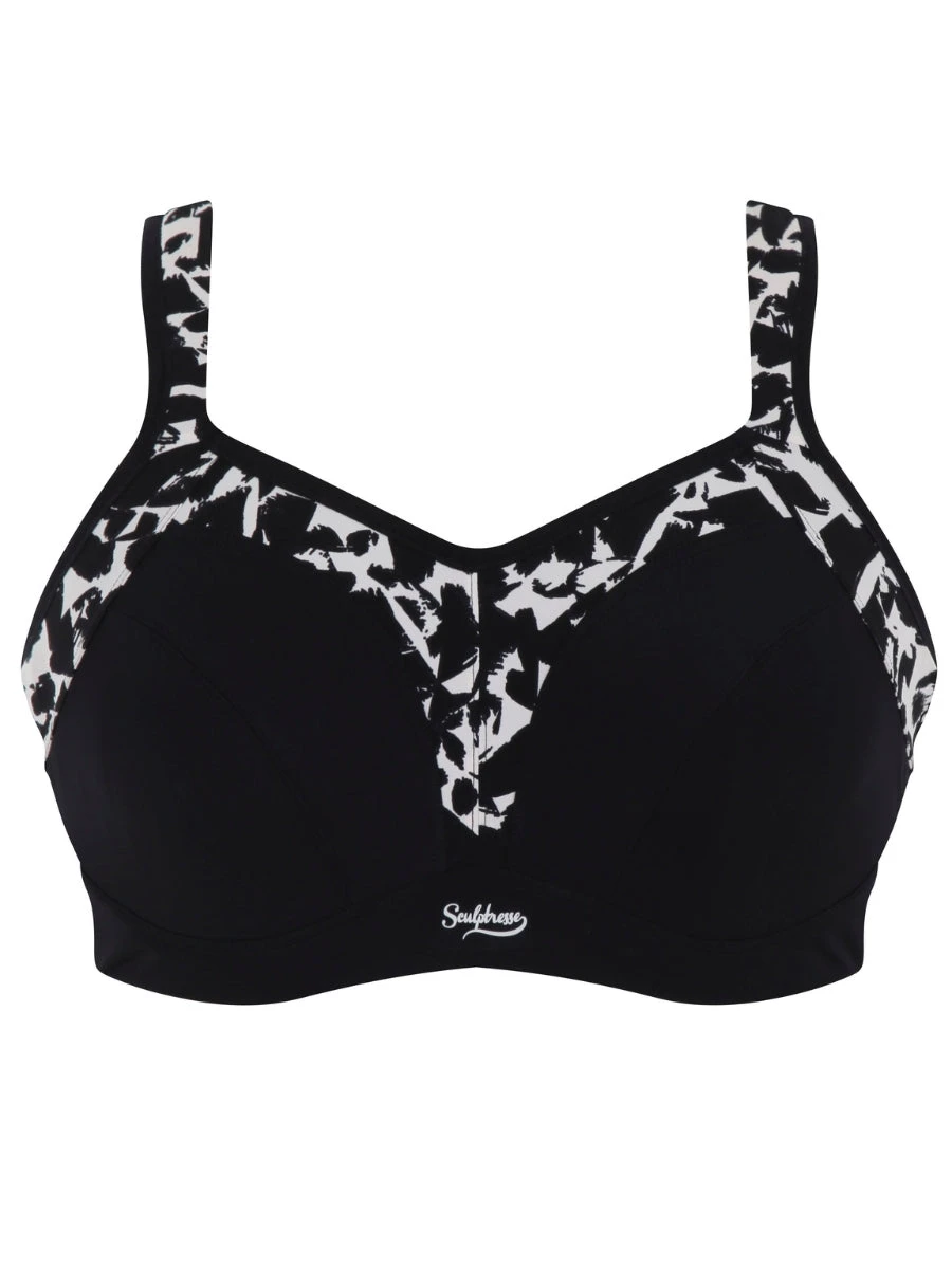 Feel supported and stylish with the Sculptresse by Panache Activate Wired Racerback Sports Bra in Mono Print. Designed for high impact sports, it features a racerback ring clasp that provides added support and relieves pressure on your shoulders. Moulded cups, wide cushioned straps, and breathable material complete this must-have for any active lifestyle.