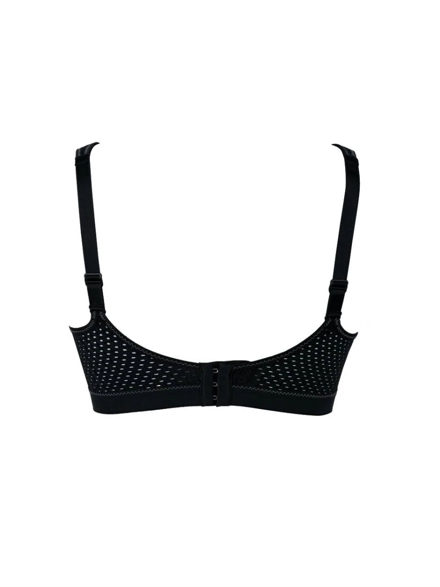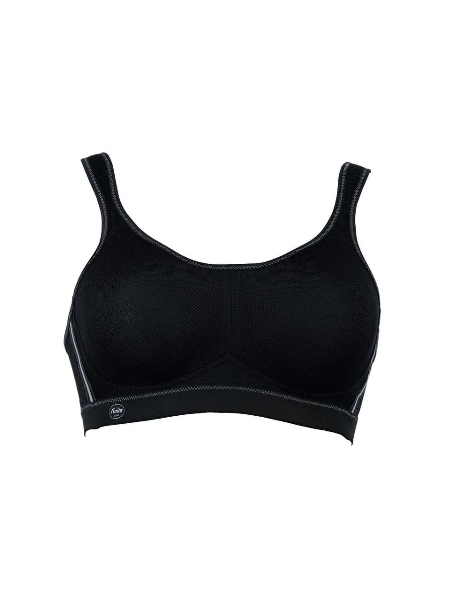 Indulge in luxurious support with the Air Control Moulded Sports Bra by Anita. Designed with non-wired, non-padded, moulded pre-shaped cups and a lightweight, breathable netted material, this bra offers unparalleled support for high impact sports. Elevate your workout and feel confident with the ultimate comfort and style of this Black sports bra.