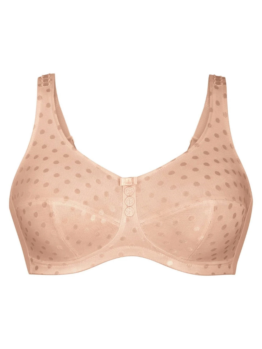 Introducing Airita Support Soft Cup Bra in Light Powder, a luxurious creation by brand Anita. Crafted from airy jacquard fabric, this bra features a supportive three section cup and non-wired design. With wide comfort straps for extra support, it offers a sleek and elegant look. Experience the ultimate comfort and style with this exclusive piece.