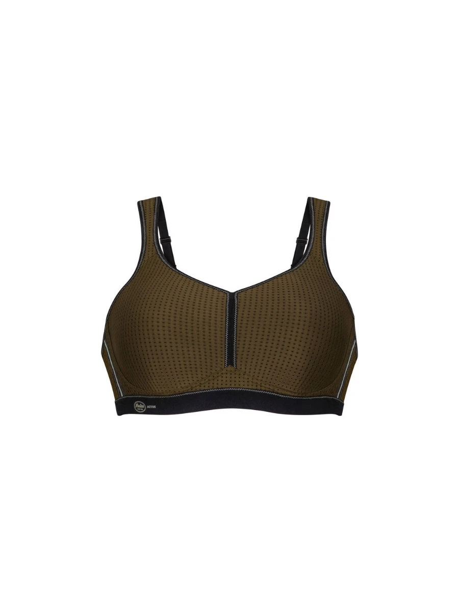 Elevate your workouts with the Anita Performance Sports Bra. Designed for high impact activities, this bra features moulded pre-shaped cups for comfortable support, and a wide band for a secure fit. Breathable mesh fabric keeps you cool, so you can push yourself to the limit. Available in Dark Olive/Black.