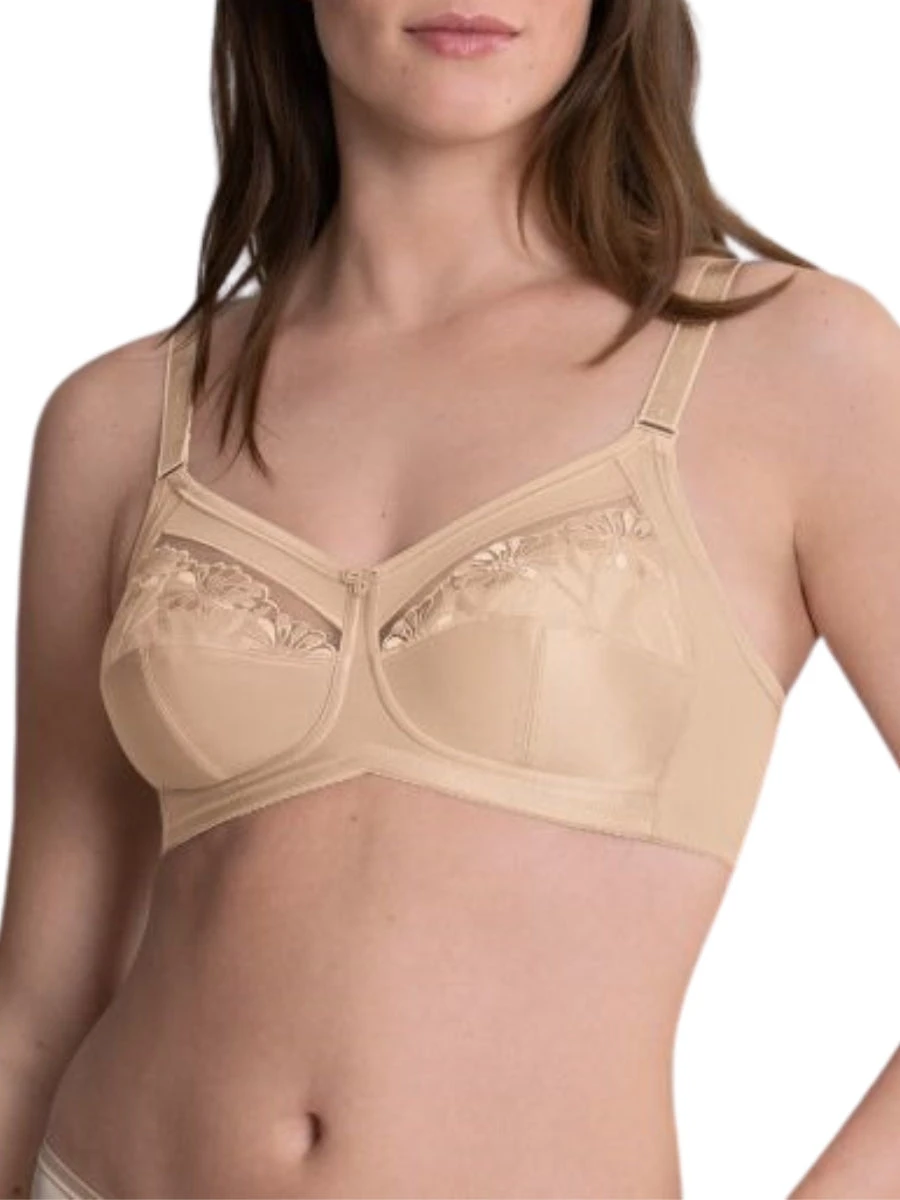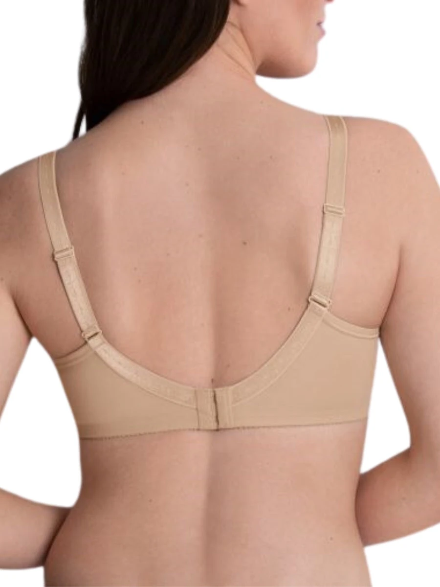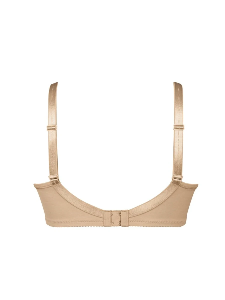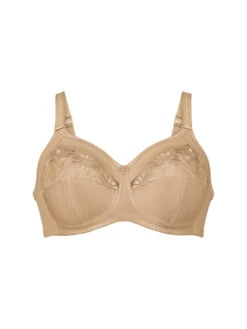 Introducing the luxurious Safina Comfort Bra in Deep Sand by renowned brand Anita. Enjoy non-wired support and full coverage, while staying comfortable with flat stretch straps. Experience ultimate elegance and comfort in this full cup design.