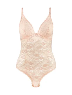 Indulge in luxury with Aubade’s Rosessence Care Body in Nude D’été. This alluring bodysuit features a plunging neckline and delicate lace details, adjustable for the perfect fit. Embrace your inner elegance and sophistication with this must-have piece.