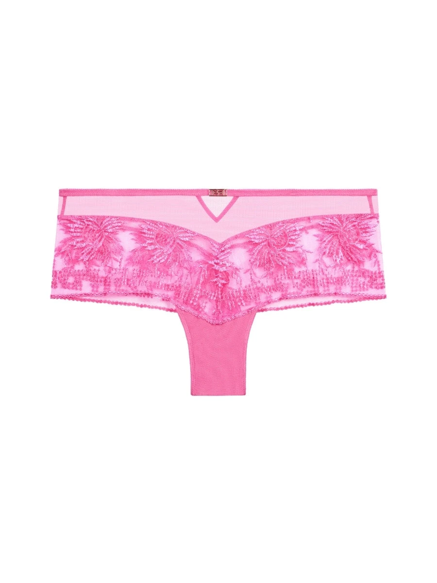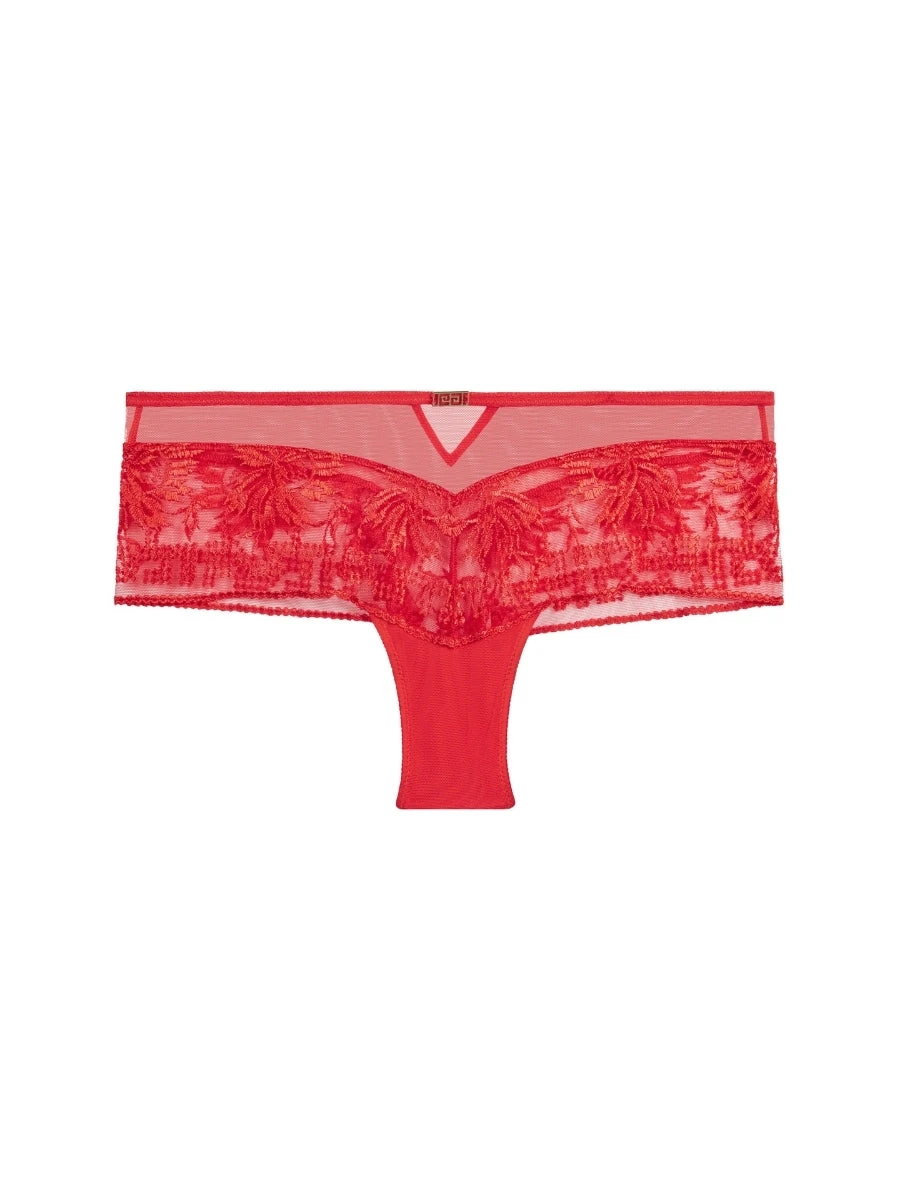 Indulge in the luxury of Aubade’s Rules of Attraction Cheeky Short. The mid rise and short design, combined with intricate French embroidery and sheer tulle, create a truly elegant and sensual piece. Complete with a cheeky keyhole detail in the back, this is a must-have for any lover of premium lingerie.