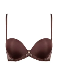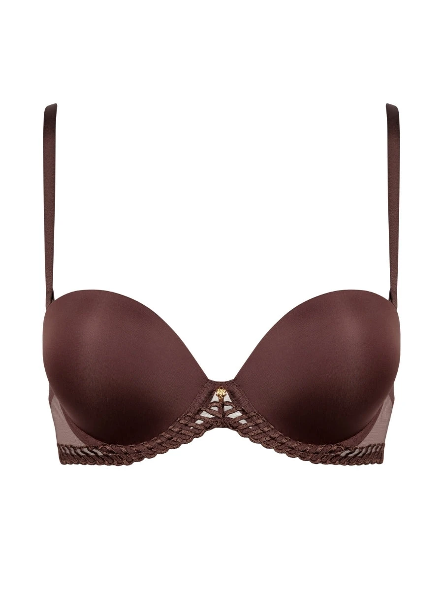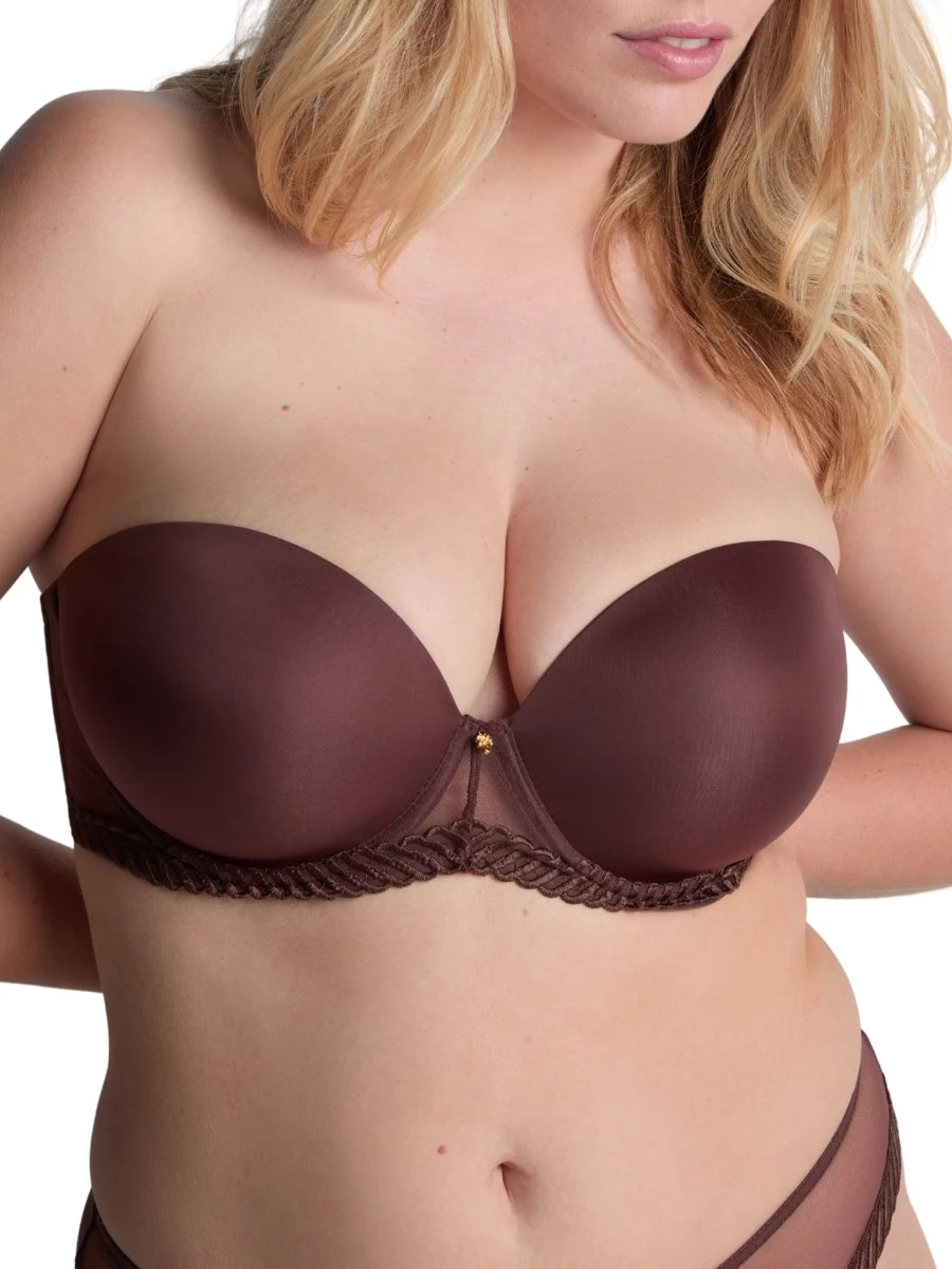 Elevate your lingerie collection with the Sheer Emotion Moulded Strapless Bra in Sepia. This strapless bra features detachable multiway straps and a plunge neckline for versatile wear. The lightly padded moulded cups provide a seamless, supportive fit while the embroidered underband trim adds a touch of elegance. Complete with a sheer tulle back for a seductive finish.