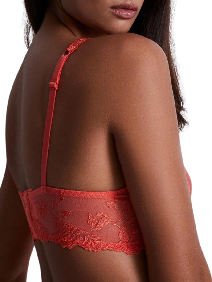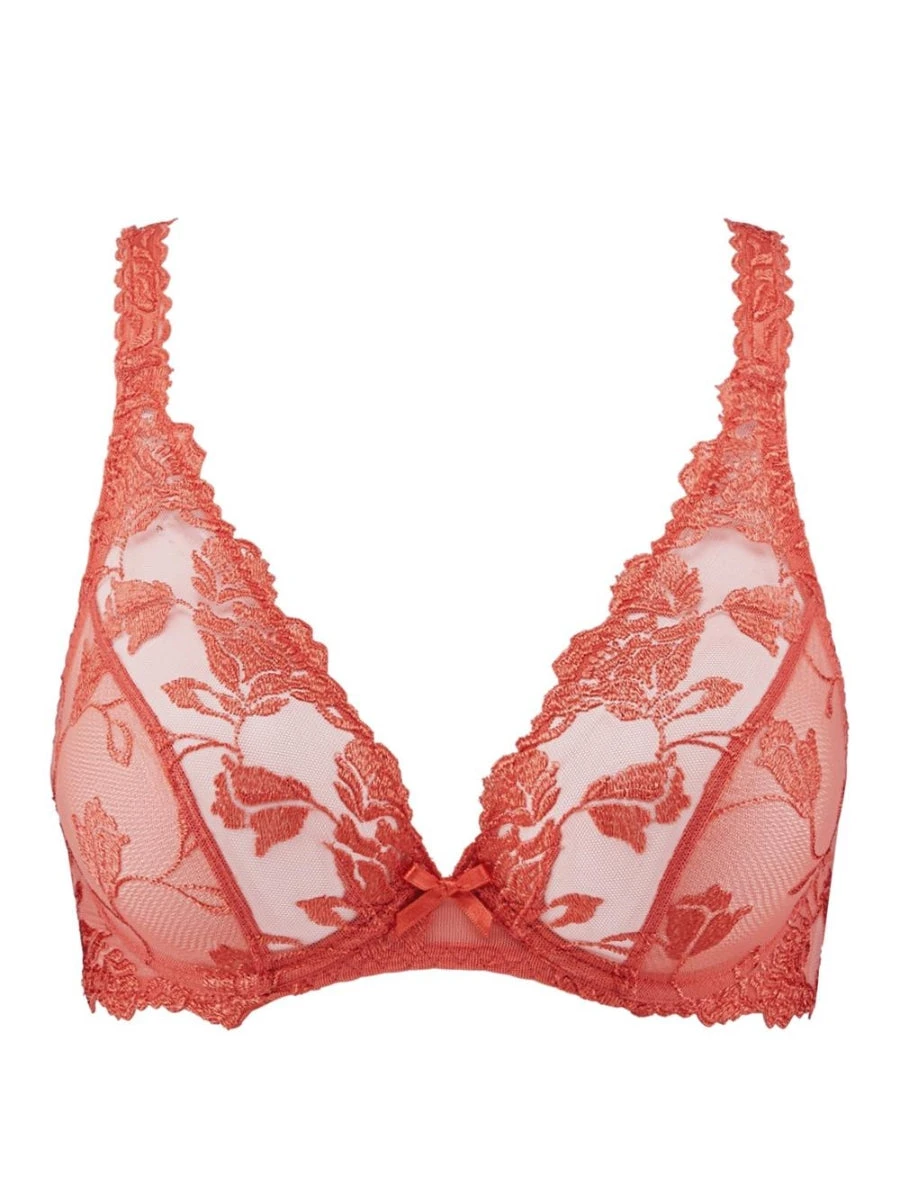Indulge in the luxurious comfort of Aubade’s Softessence Triangle Bra. The unique triangle shape and high apex design provide a low plunge for a seductive touch. Recycled floral embroidery adds an eco-friendly element, while the wide back ensures both comfort and support. Elevate your lingerie collection with this exclusive, lightweight bra.