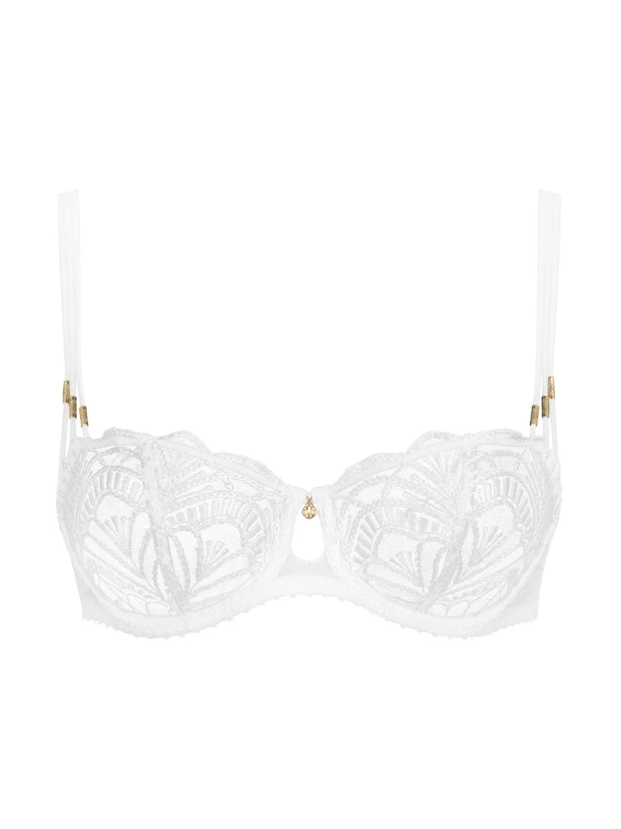 Elevate your lingerie collection with the luxurious Vibes Half Cup Bra by Aubade. This non-padded, underwired bra features intricate art deco inspired lace and a seductive keyhole detail. The half cup design provides a cleavage boost, giving you a lifted and alluring silhouette. Indulge in the ultimate combination of elegance and seduction with Pearl.