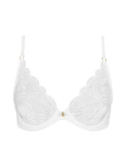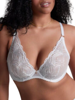 The Aubade Vibes Triangle Plunge Bra in Pearl is a truly luxurious piece, featuring intricate art deco inspired lace and a deep plunge design with a high apex. Underwired for support and non-padded for a natural look, this bra is perfect for a sophisticated and exclusive feel.