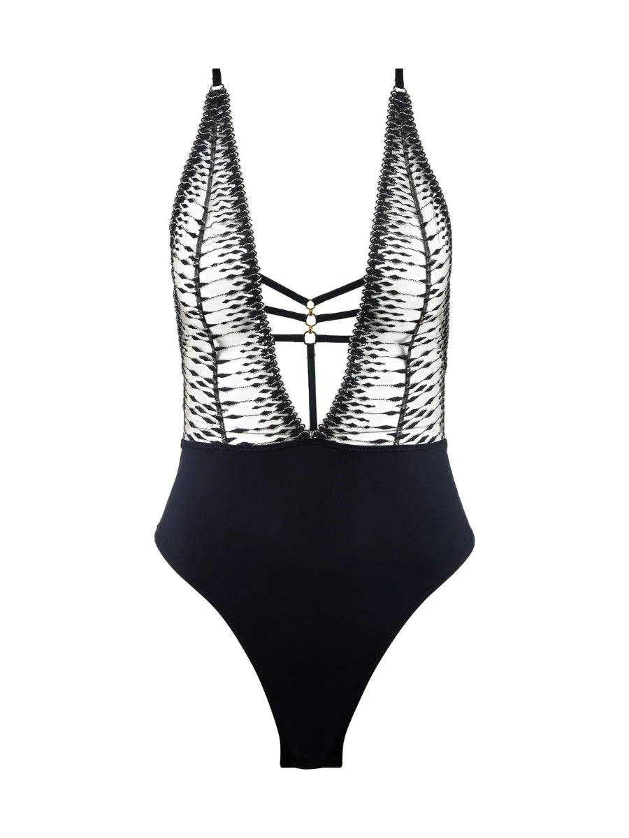Indulge in luxury with Aubade’s Voodoo Kiss Bodysuit in Millenium Black. This non-wired and non-padded bodysuit features a deep plunge and low back for a seductive silhouette. Embroidered with nude illusion and delicate lurex thread, this premium piece is designed to be seen, making you feel both sensual and sophisticated.