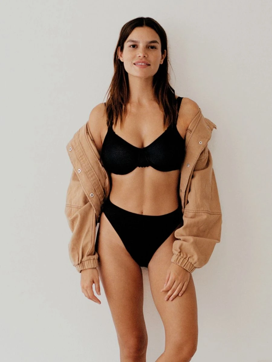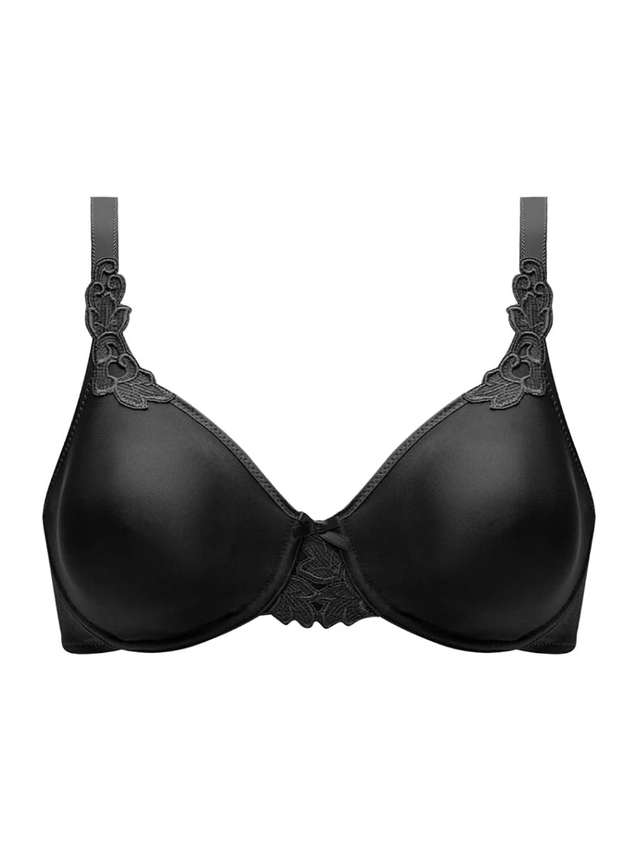 This Hedona bra provides excellent support and has appearance and feel of a t-shirt bra. Featuring moulded full cups made from soft simplex knit, minimalist lace trimming, and exquisite embroidery. Hedona has been a best-selling Chantelle bra design since 1998, with a broad back band that for support and center-straps that keep them from slipping off your shoulders through the day.