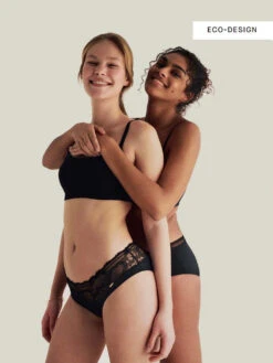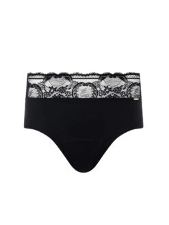 Chantelle Period Pants, a new must have for comfort, every single day. Designed with an eco friendly mindset, these high waisted lace period pants are made from organic cotton and recycled microfiber. This full brief features anti odour, moisture wicking fabrics and a seamless quality lace trim. Perfect for wear up to 12 hours, based off a heavy menstrual flow. Available in Black and Fig.