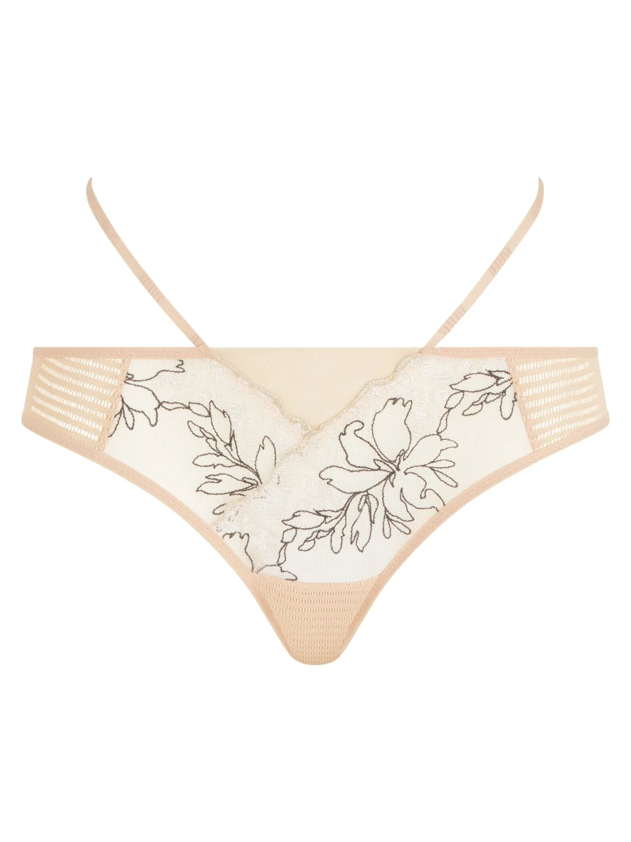 Introducing the Spice Tanga, part of the luxurious Pulp by Chantelle range from renowned brand Chantelle. This mid-rise tanga features a delicately embroidered front and a seductive fishnet back, adorned with alluring strappy details. Elevate your lingerie collection with this elegant and sensual piece.