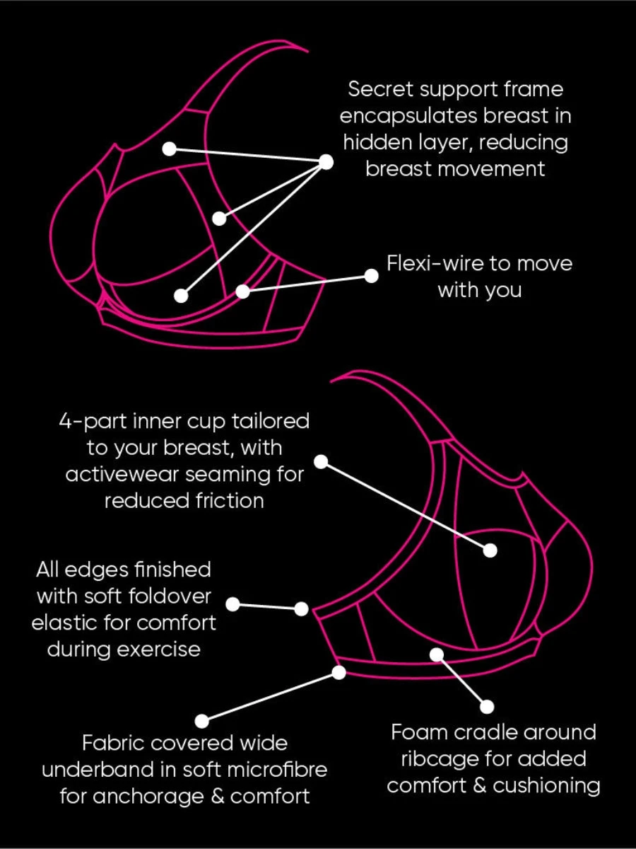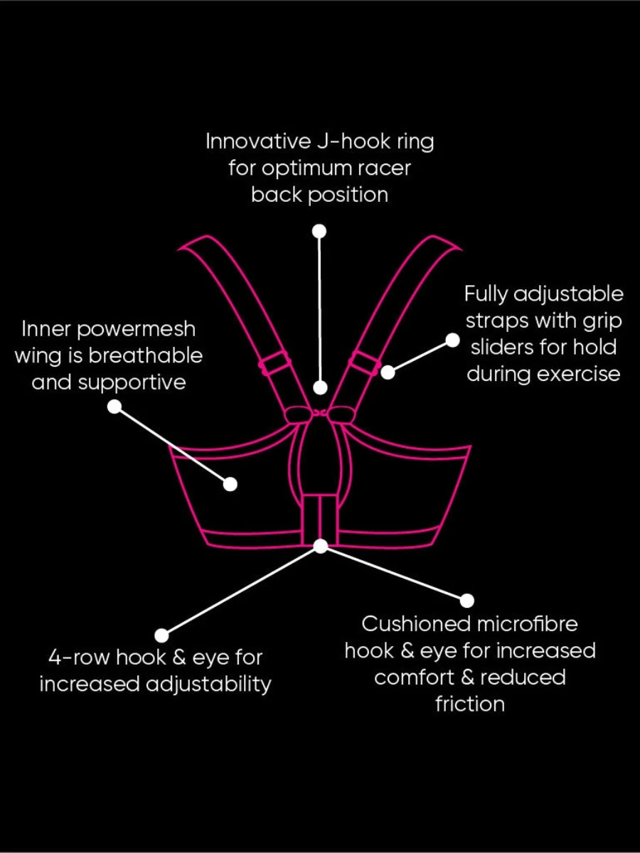 The Everymove Wired Multiway Sports Bra from Curvy Kate is the perfect choice for high impact sports. Its triple layered, four-part cup construction encapsulates the breast, reducing movement. The comfortable flexi wire moves with you, while the soft microfibre underband and MicroFresh fabric keep you feeling fresh and supported. The J-Hook also offers a Racerback option for even more support. Experience the ultimate in comfort and style with this elegant and exclusive sports bra.