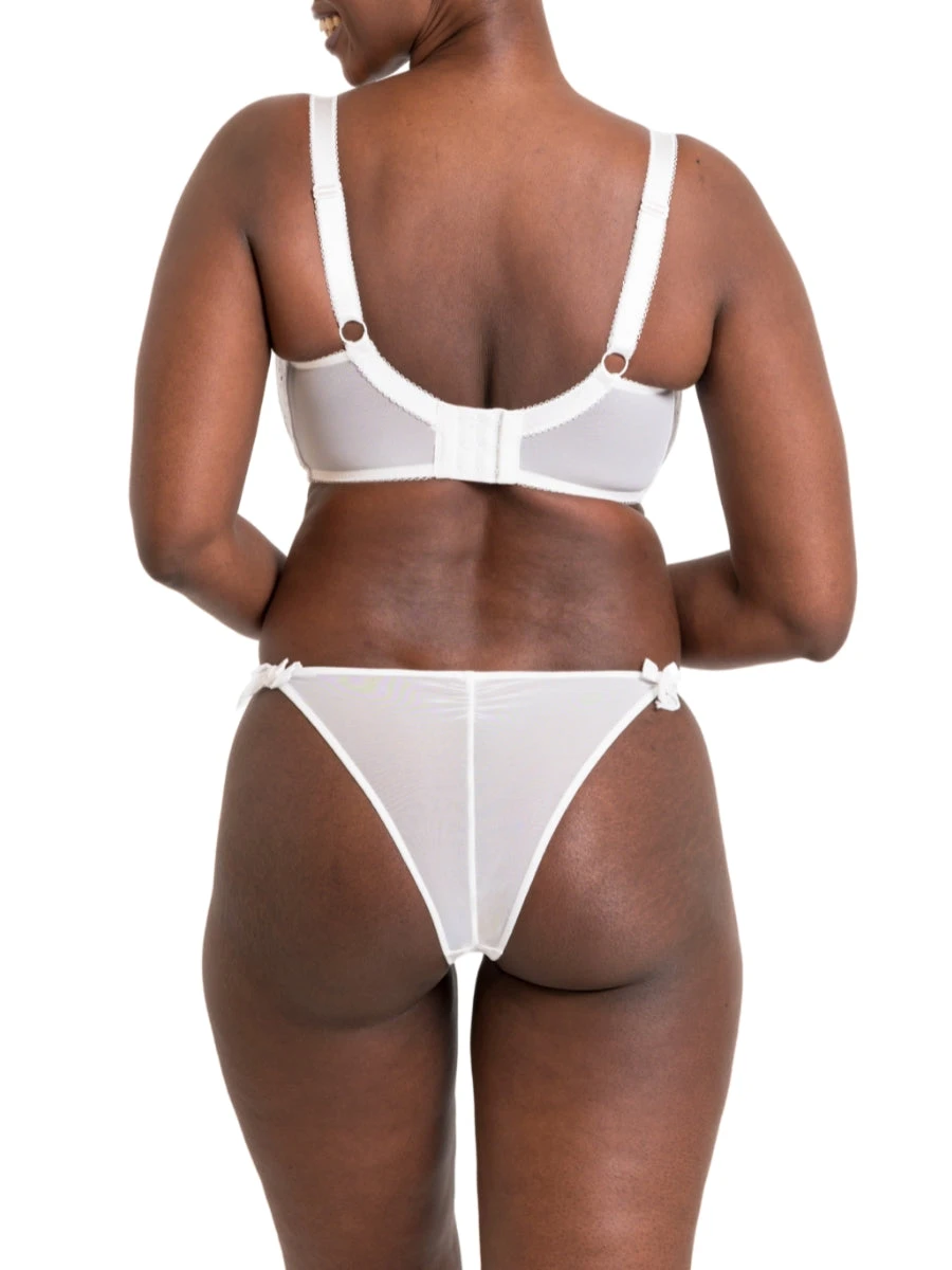 Indulge in luxury with the Flora Balcony Bra in classic White from premium brand Curvy Kate. This non-padded, underwired bra offers ultimate support with uplifting vertical seams, giving a stunning cleavage. Adorned with delicate broderie anglaise inspired embroidery and pretty lace trim, this bra exudes elegance and sophistication. Elevate your lingerie collection with this scalloped edged beauty.