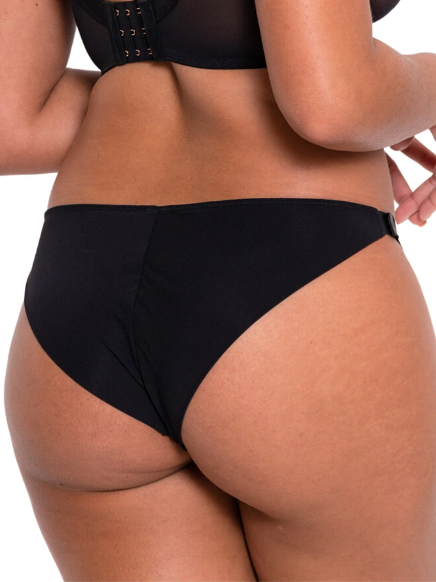 Indulge in luxury with Mesmerise Brazilian, part of the Scantilly by Curvy Kate line. Vibrant embroidery adorns this low rise, semi sheer mesh panty, accented with rose gold hardware. Exude elegance and sophistication in this exclusive piece.