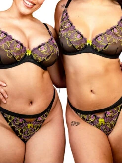 Upgrade your lingerie game with the Stand Out Plunge Bra in Black Multi by Curvy Kate. Featuring a deep plunge and scooped neckline, this bra is designed to enhance your natural curves. The delicate lace top cups and floral bloom embroidery add a touch of elegance, while the inner slings pull the bust into the centre for a flattering fit.