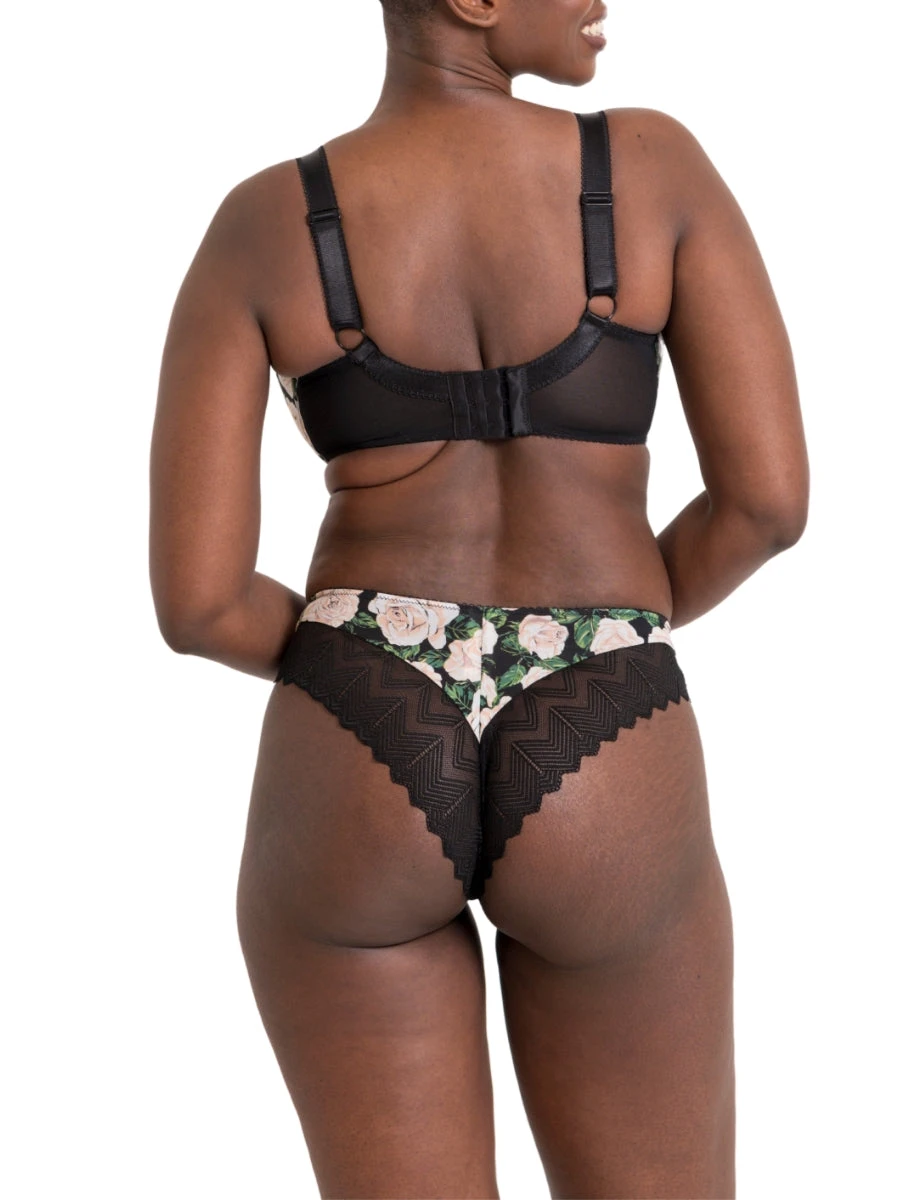 Indulge in luxury with the Wild One Brazilian by Curvy Kate. Designed with a mid rise and high leg cut, this Brazilian panty features a cheeky fit and geometric stretch lace edges for a sensual and sophisticated look. Embrace your curves with every wear.