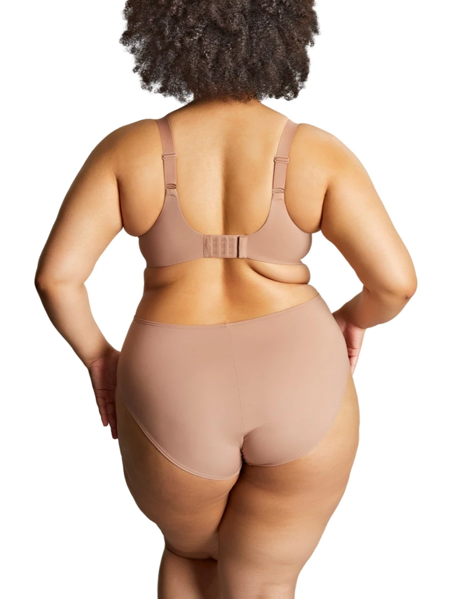 Elevate your lingerie game with the Esme Balcony Bra in Mocha Animal. Designed by brand Sculptresse by Panache, this balcony bra features a four piece cup construction with a side sling for forward projection. The flexible stretch lace top cup and supportive firm bottom cup provide comfort and support, while the padded hook & eye adds an extra touch of luxury. Perfect for everyday wear, this non-padded bra also has smoothing back wings for a seamless look.
