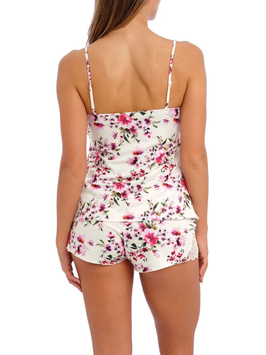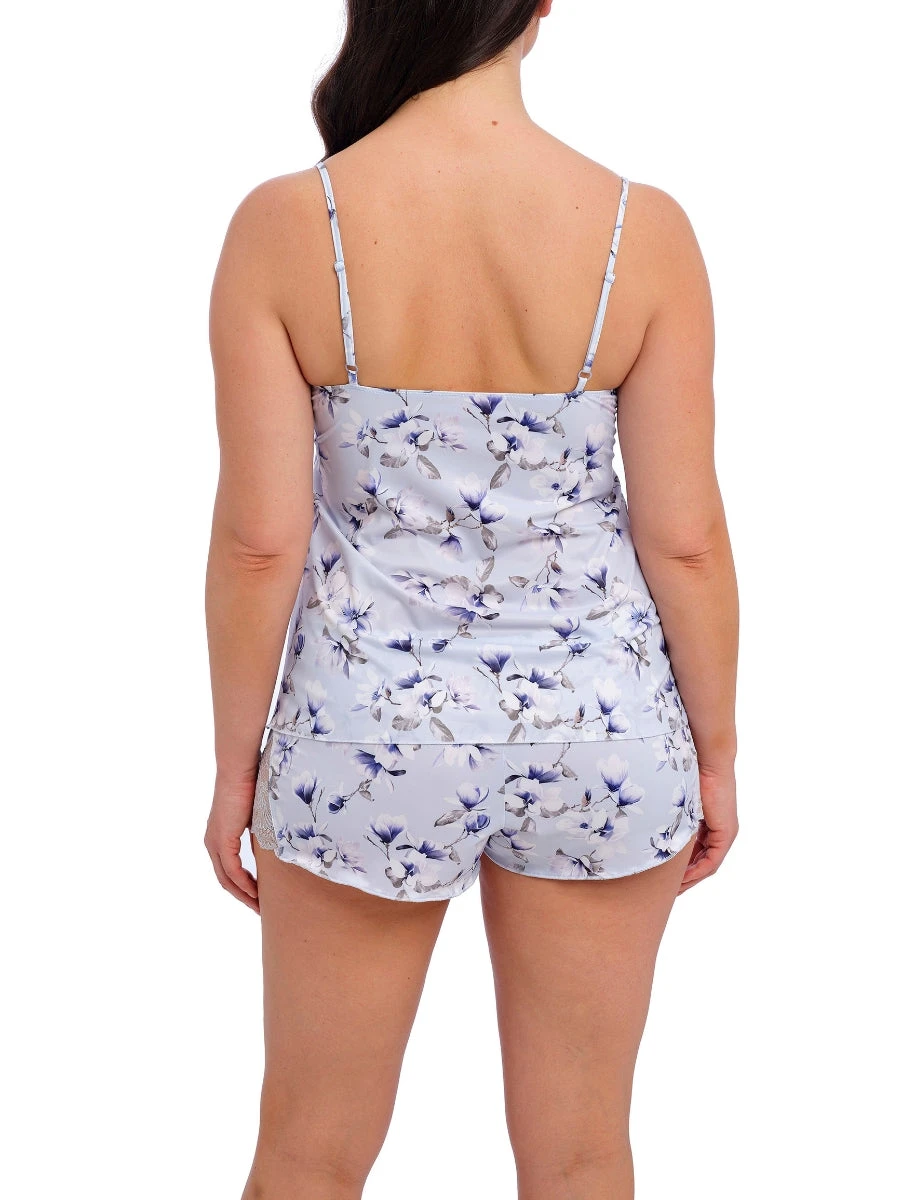 Introducing the Lucia Camisole by Fantasie. Featuring soft handle printed fabric, stretch lace neckline, and gentle gathers for shaping. Fully adjustable rouleau straps and delicate bow detail with rose gold charm add a touch of elegance.