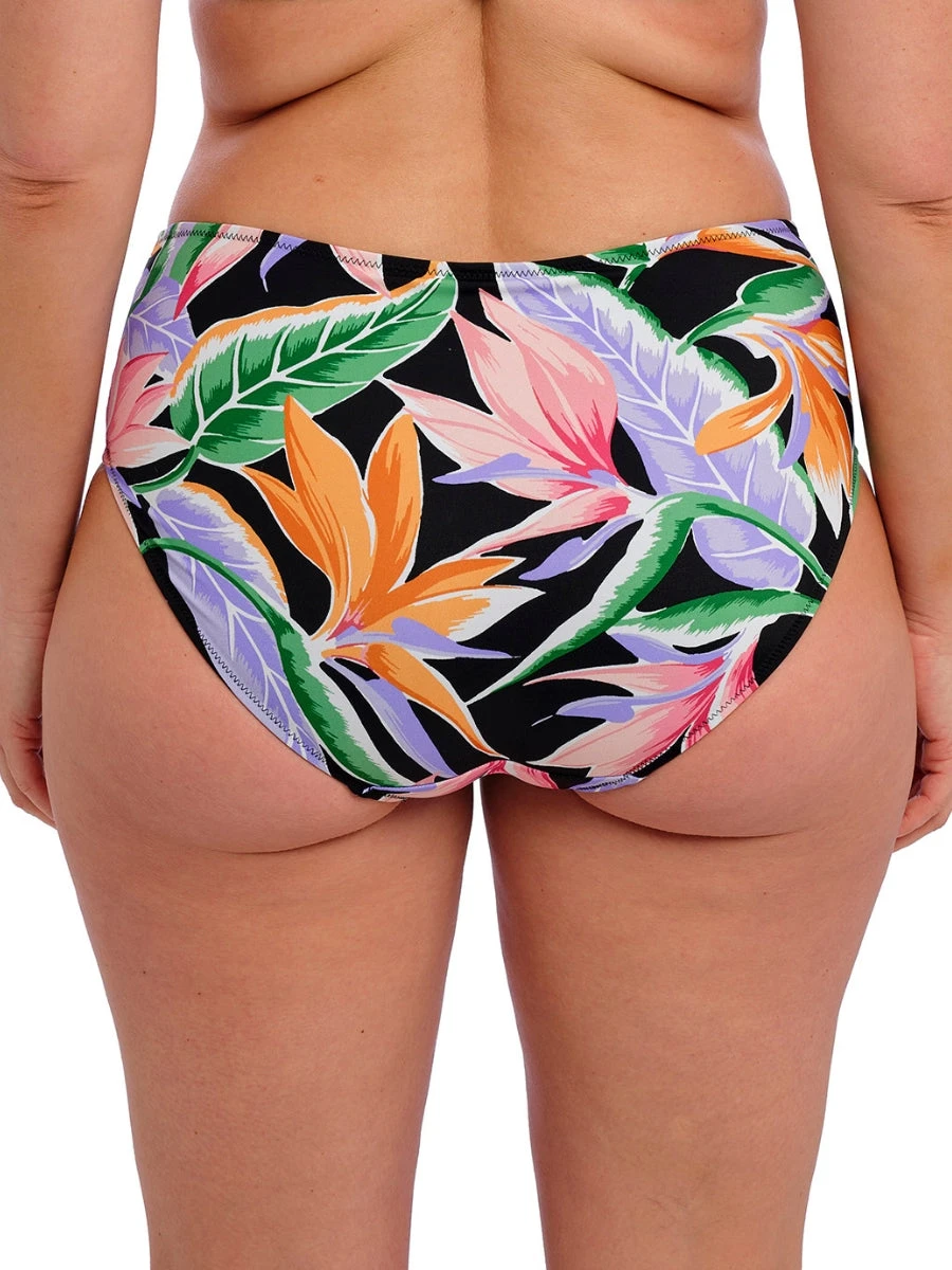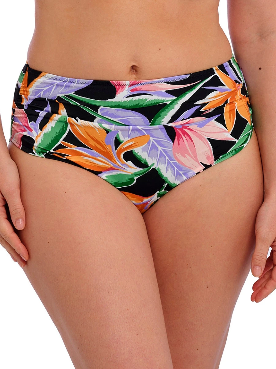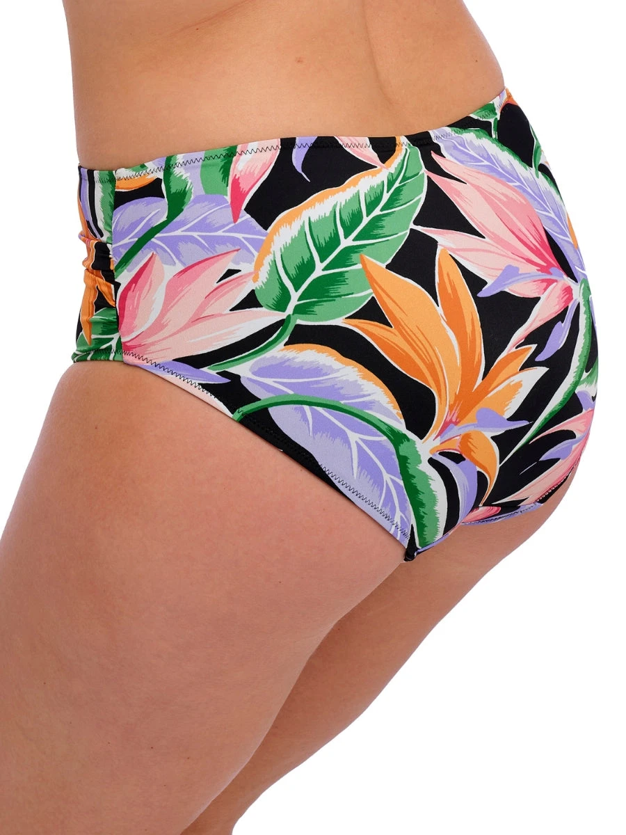 Fantasie’s Mykonos Cove Full Bikini Brief offers superior coverage with a high-waisted design that flatters your figure. The strategic ruching enhances your silhouette while the tropical palm leaf pattern adds a sophisticated resort aesthetic. Fully lined for comfort and confidence, this premium swimwear piece provides both style and practicality for beach or poolside wear.