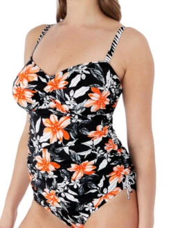 Experience sophistication and style with the Port Maria Twist Front Tankini in classic black. The twist front detail and ruched body create a flattering silhouette, while the adjustable side ties allow for variation of body length. Lightly padded foam cups provide comfort and a smooth, rounded profile.