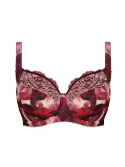 Indulge in luxury with the Rosemarie Side Support Bra by Fantasie. This full cup bra in rouge features delicate lace detailing and side support for a natural shape and comfortable fit. Elevate your lingerie collection with this exclusive piece in red floral.