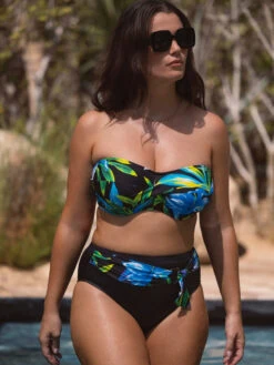 The Talm Beach Bandeau Bikini Top by Fantasie exudes luxury and sophistication. This premium swimwear features a twist front detail, sweetheart neckline, and detachable multiway straps for customizable style. With its underwired and lightly padded design, this bandeau top offers both support and comfort. Perfect for lounging by the pool or strolling along the beach, its tropical leaf print will make you stand out in the most elegant way.