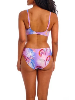 The Miami Sunset Plunge Bikini Top by Freya exudes tropical allure with its vibrant print. The underwired and lined cups provide optimal shape and support, while the plunging neckline adds a touch of sultry sophistication. Embrace luxury and style in this Cassis bikini top.