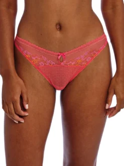 Introducing the Sydnie Brazilian, from the luxurious Freya brand. With its mid-rise fit and Brazilian cut, this cheeky panty features delicate mesh and lace detailing, as well as a seductive keyhole front. Elevate your lingerie collection with this exclusive and sophisticated piece.