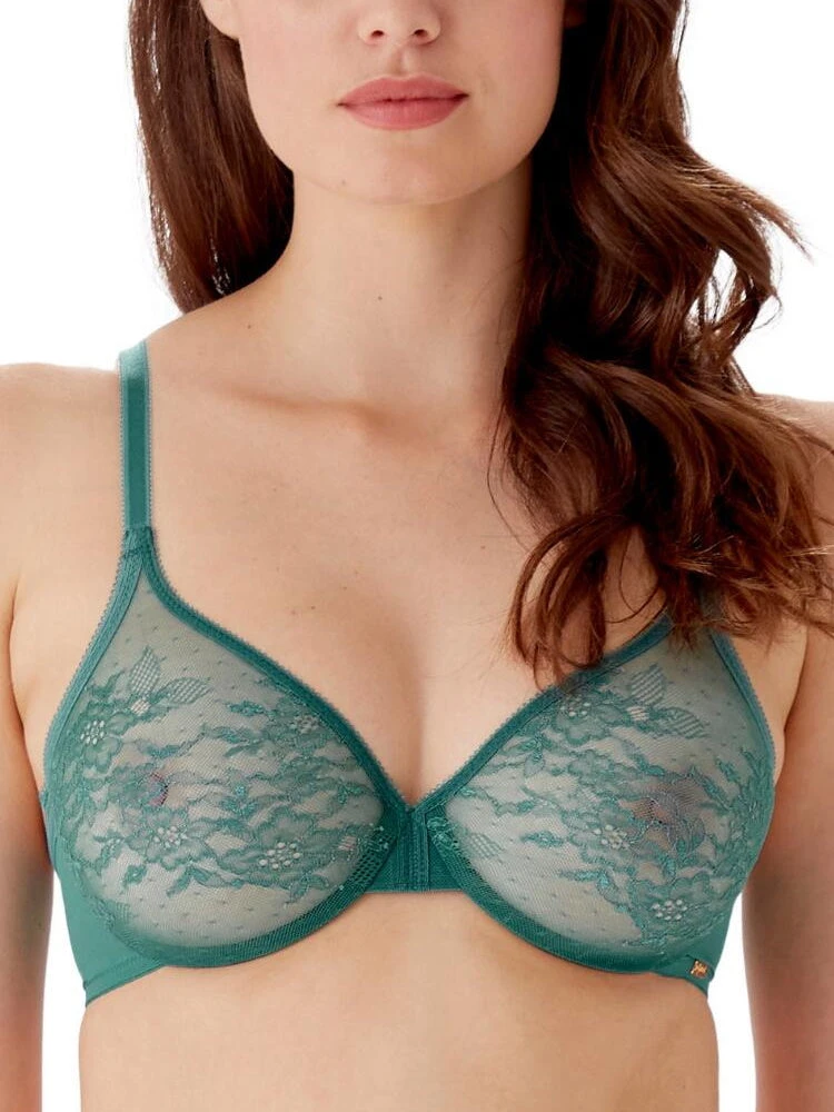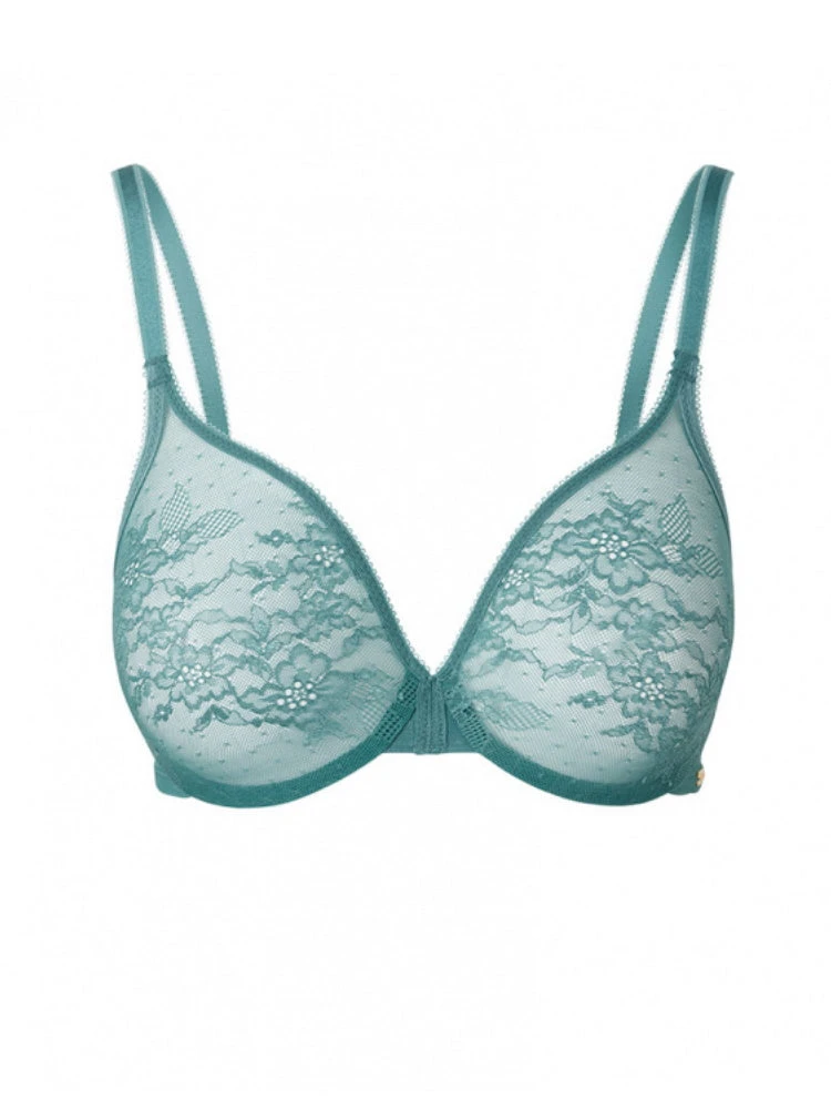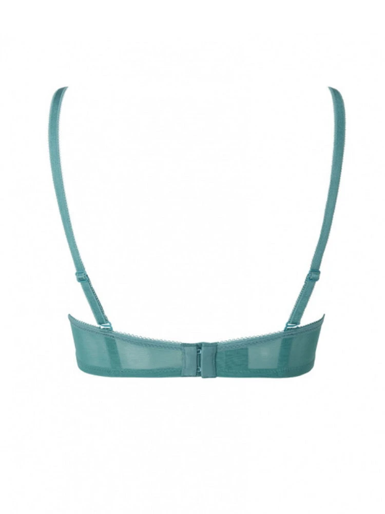 This Sheer Bra in Jade offers a deep plunge neckline and seamless, moulded cups. Finished with a gold signature plate detailing. Matches perfectly with either the Glossies Lace Thong or the Glossies Lace Brief.