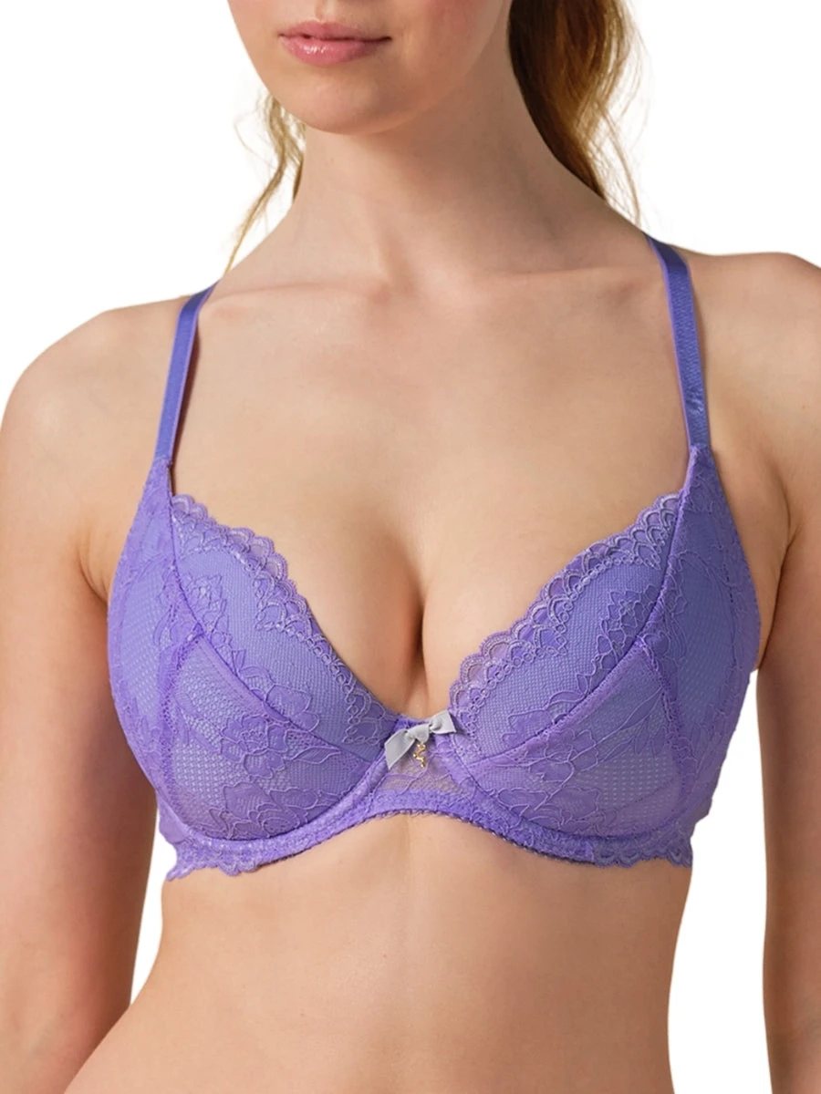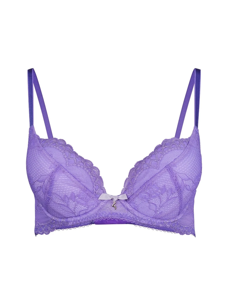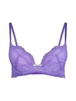 Fashioned from beautiful corded stretch lace is Gossard’s Superboost Lace Padded Plunge Bra in Purple Hebe.