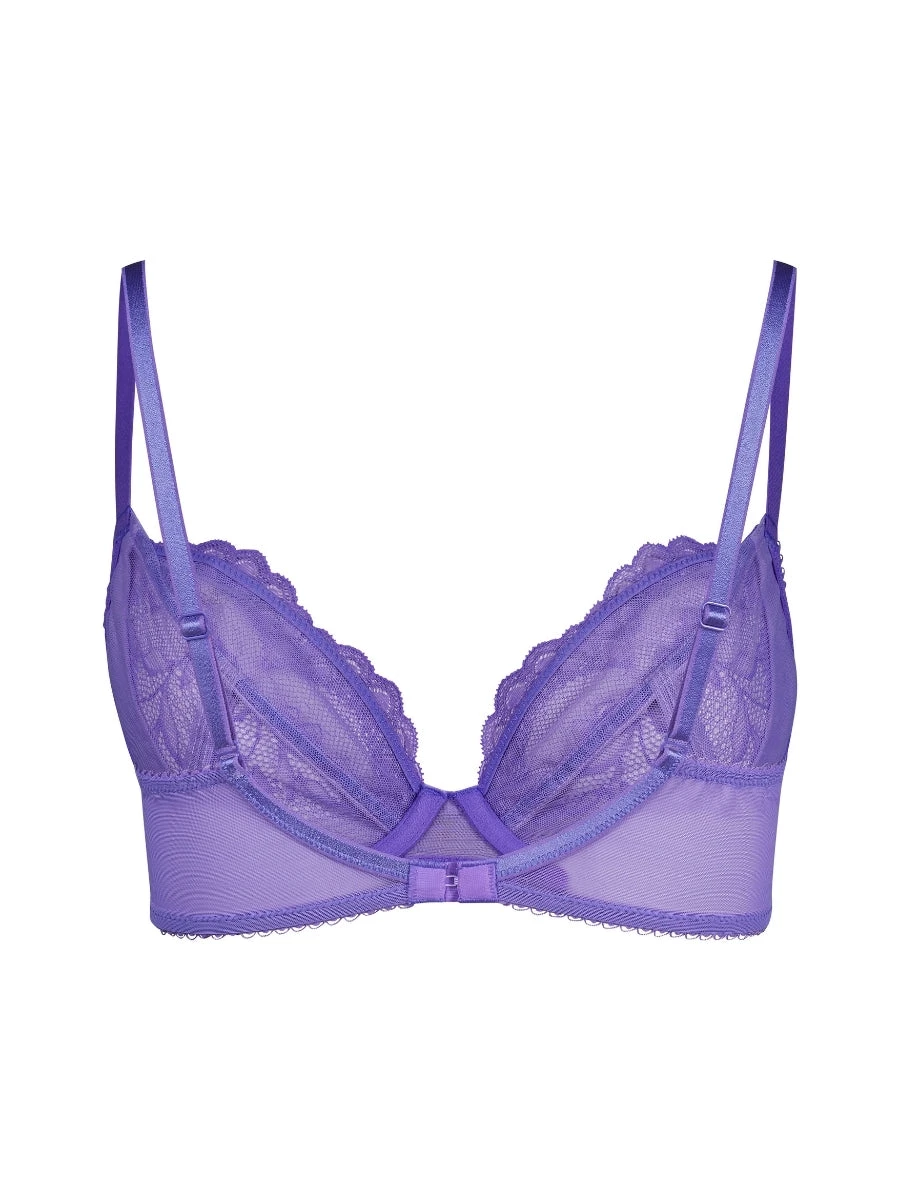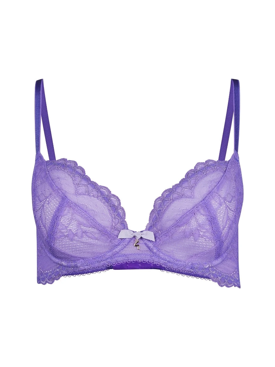 Fashioned from beautiful corded stretch lace is Gossard’s Superboost Lace Plunge Bra in Purple Hebe.