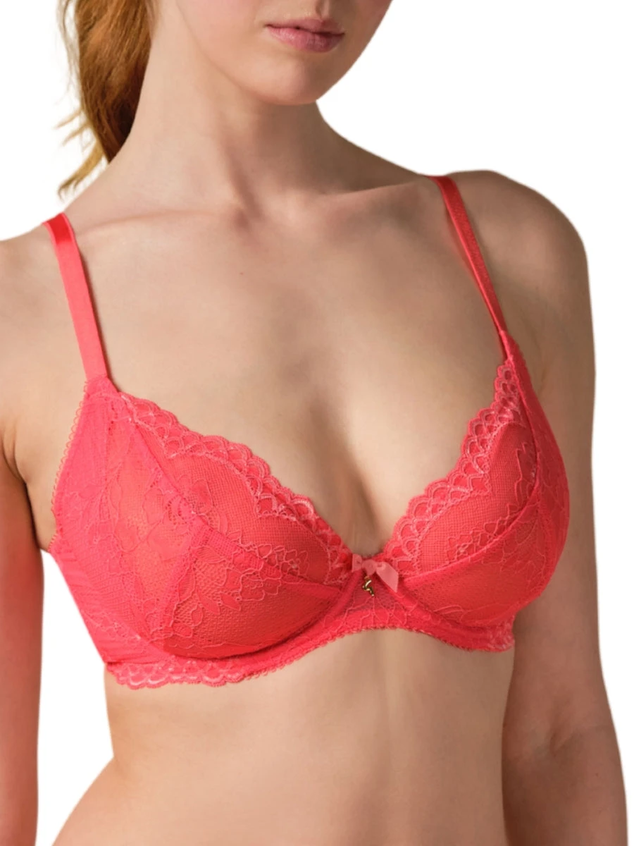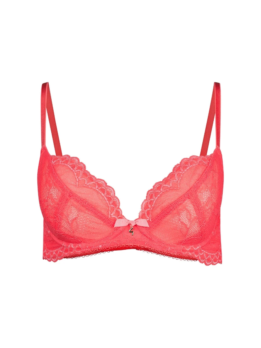 Fashioned from beautiful corded stretch lace is Gossard’s Superboost Lace Plunge Bra in Sugar Coral.