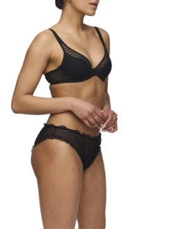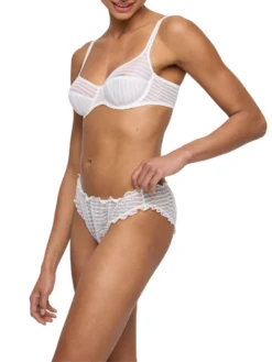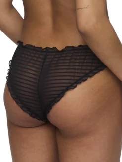Elevate your lingerie collection with the Basyl Frill Brief from luxury brand Marie Jo. This mid-rise brief features a playful frilly design and striped mesh, bringing a touch of sporty chic to your undergarments. Embrace the elegance and sophistication of this unique and exclusive piece.