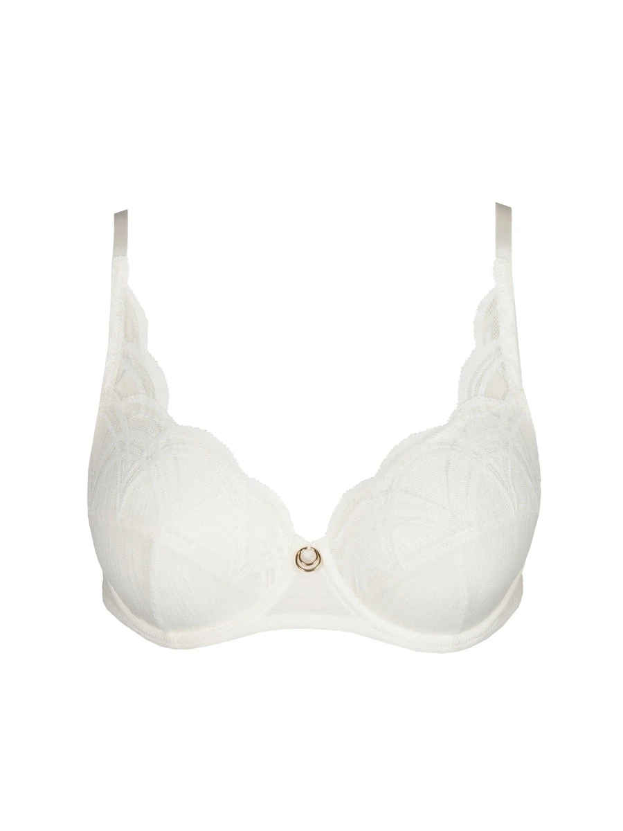 Indulge in luxury with the Cathia Full Cup Bra in classic Natural by Marie Jo. This non-padded, underwired bra offers everyday support with a delicate lace design. Its full cup style provides luxurious comfort for a truly elegant and exclusive experience.