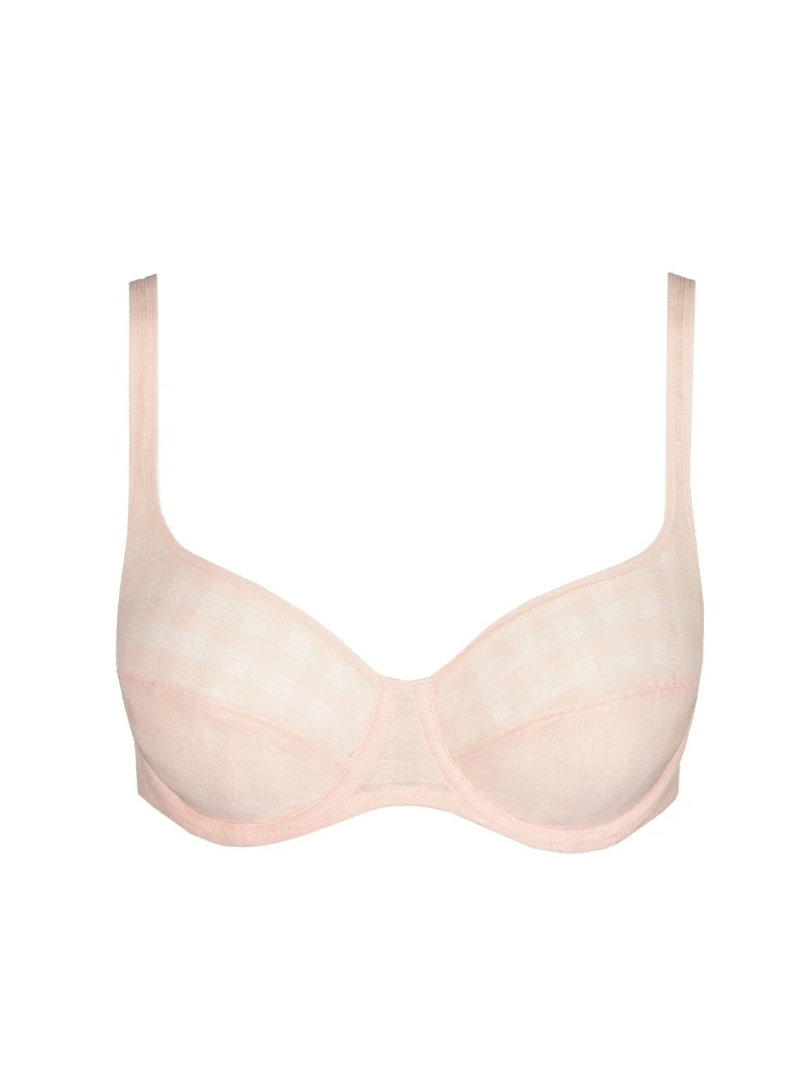 Elevate your lingerie collection with the Jereme Full Cup Bra in Glossy Pink by Marie Jo. The non-padded design gives a natural shape, while the underwiring provides support. Made with a sleek check print mesh, this bra combines style with comfort for a truly luxurious feel.