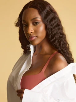 Introducing the 365 Moulded T-Shirt Bra by Panache in stunning shade Lipstick. A luxurious t-shirt bra featuring underwired, lightly padded cups for everyday support. The flexible underband moves with you, while the cross-over straps allow for multiway wear. Bonded neckline and underarms provide a smooth and seamless appearance. Made with recycled yarns, this is the perfect everyday bra for a sustainable and sophisticated wardrobe.