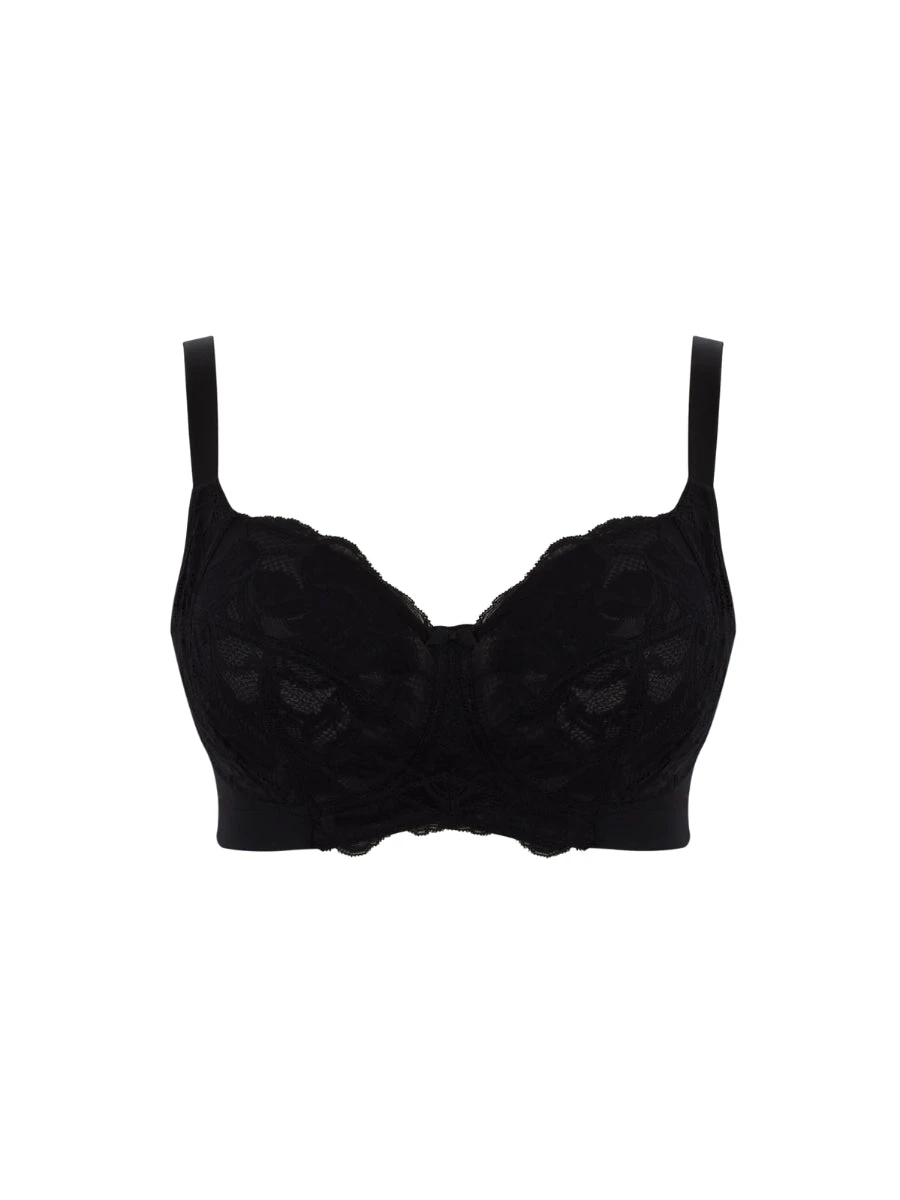 Indulge in luxury with the Panache Rocha Non Wired Bra. This exquisite piece features a soft cup for ultimate comfort and a supportive, full coverage design. The lace top cup, lined with stretch mesh, offers extra support while the wide underband elastic ensures unparalleled comfort. Made with sustainably sourced fabrics, including lace made from 100% recycled yarn, this bra is both elegant and environmentally conscious.