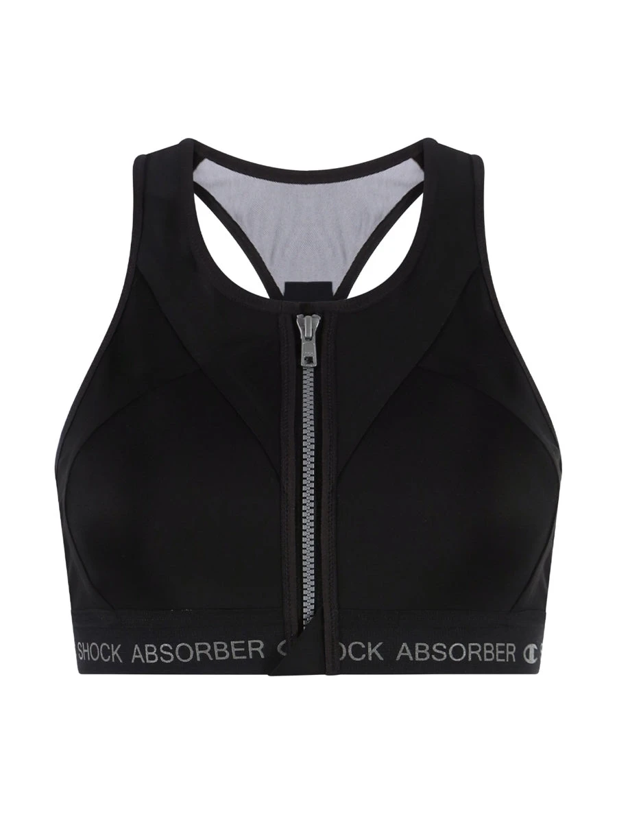 The InfinitY Power Zip Front Sports Bra in Black from Shock Absorber combines non-wired, breathable moulded cups and a zip front for easy wear. Its Y shaped back allows for ultimate freedom of movement, and its high-performance fabrics manage moisture during high impact sports. Stay supported and comfortable in this exclusive bra.