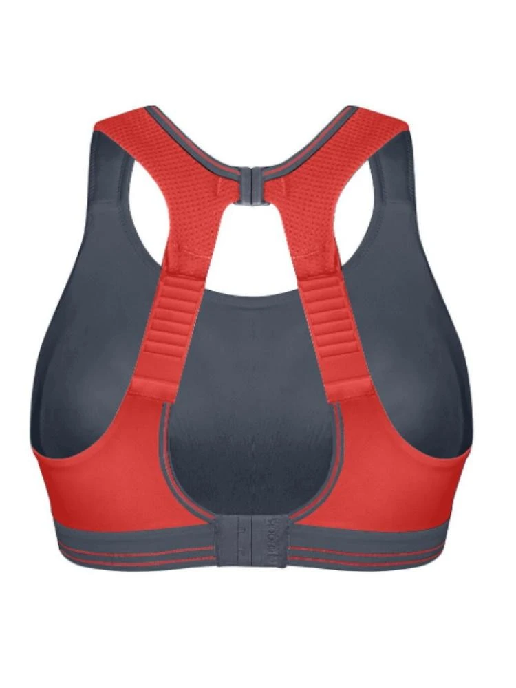 Elevate your running experience with the Ultimate Run Sports Bra in Slate Grey/Grenadine. Designed by Shock Absorber for high impact sports, this non-wired sports bra features a supportive racerback and wide padded straps for maximum comfort. Its non-padded, full coverage design and moisture-wicking, breathable fabric make it the perfect choice for your active lifestyle.