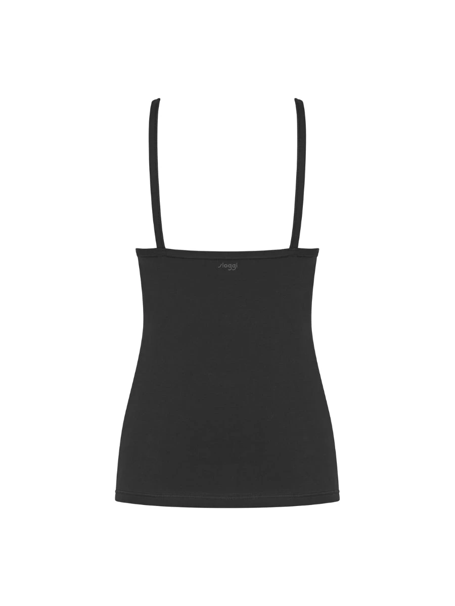 Introducing the luxurious EVER Ease Spaghetti Top in timeless Black by Sloggi. This versatile camisole is perfect for everyday wear, with its adjustable spaghetti straps and comfortable fit. Use it as a layering piece or flaunt it on its own for a sophisticated and exclusive look.
