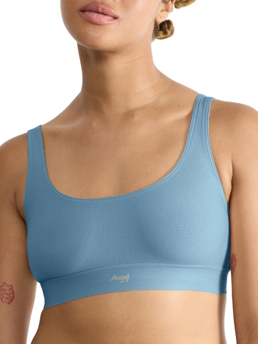 Indulge in luxurious comfort with the Sloggi EVER Ease Top in Provincial Blue. This non-wired, non-padded bralette features a pullover design for effortless wear. Perfect for lounging, it offers ultimate relaxation and support. Elevate your lingerie collection with this elegantly comfortable piece.