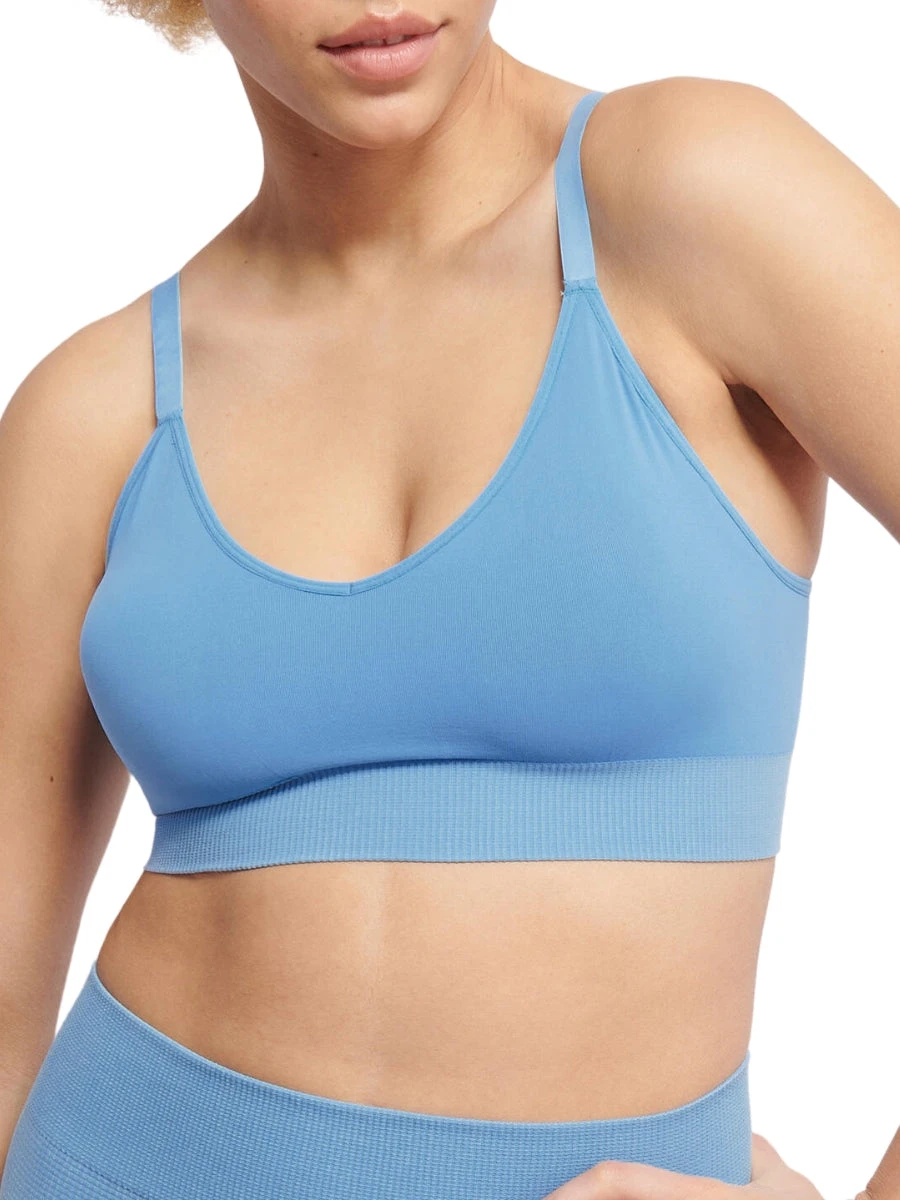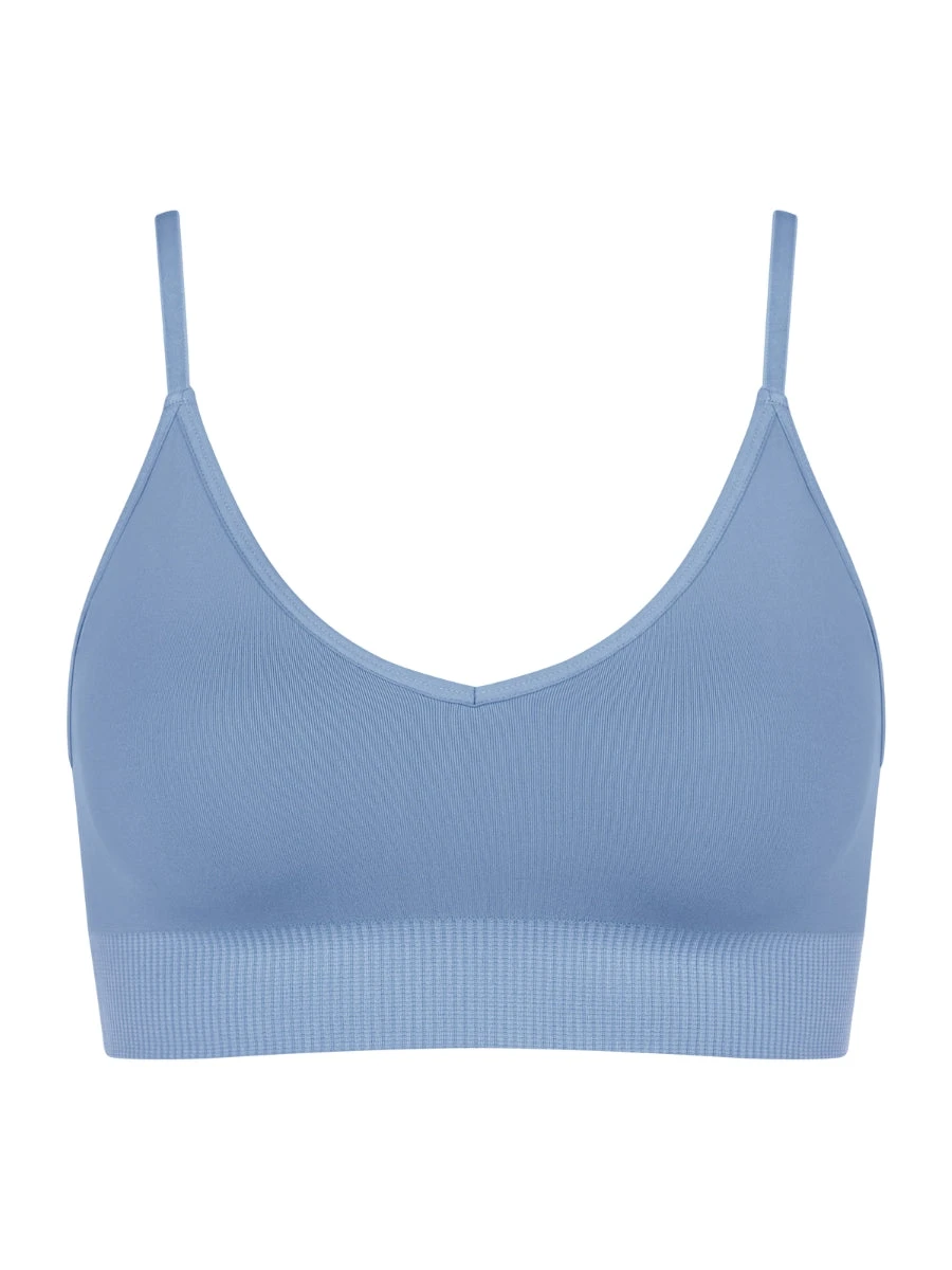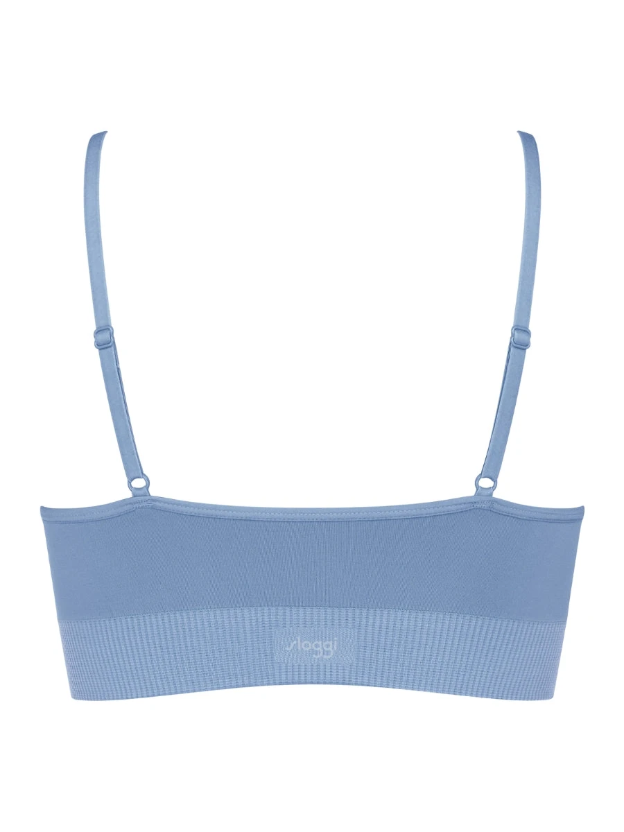 Introducing the EVER Infused Camomile Bralette in Azura Blue by luxury brand Sloggi. This elegant bralette features removable padding and adjustable straps for ultimate comfort and a non-wired design for a more natural fit. Experience true sophistication and exclusivity with this premium piece.