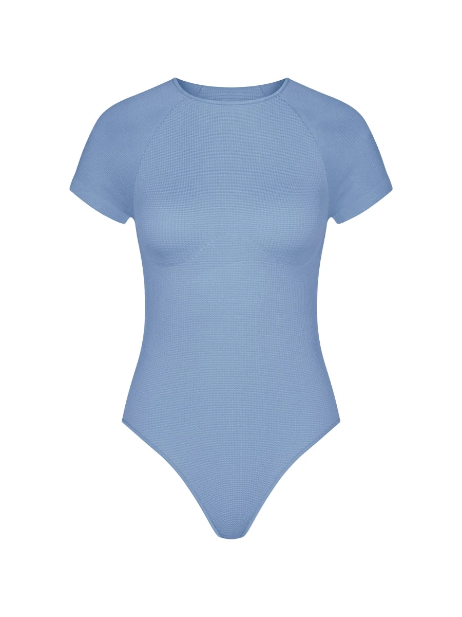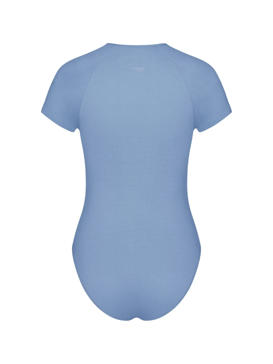 Indulge in luxury with the EVER Infused Camomile Short Sleeve Body from brand Sloggi. Elevate your loungewear game with this Azura Blue bodysuit, featuring breathable and soothing camomile-infused fabric. Relax in style and comfort.