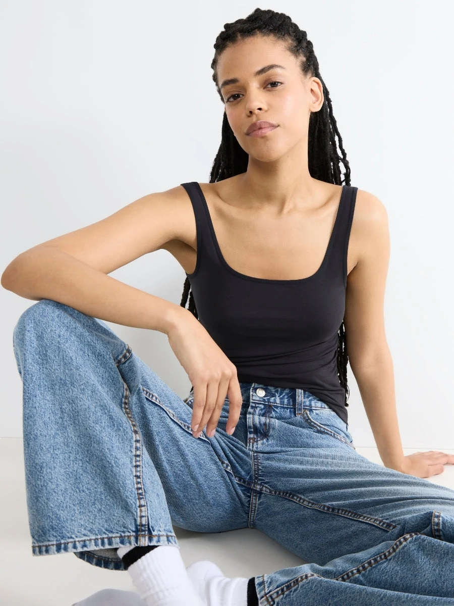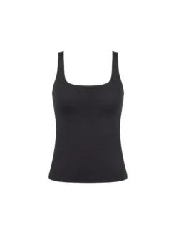 The GO Sense Tank Top in Black features wide straps and a square neckline, designed for both style and comfort. Crafted from supersoft, seamless fabric, it offers a smooth, irritation-free fit ideal for all-day wear. Its minimalist design ensures versatility, making it a reliable layering piece or stand-alone top for expert comfort and understated elegance.