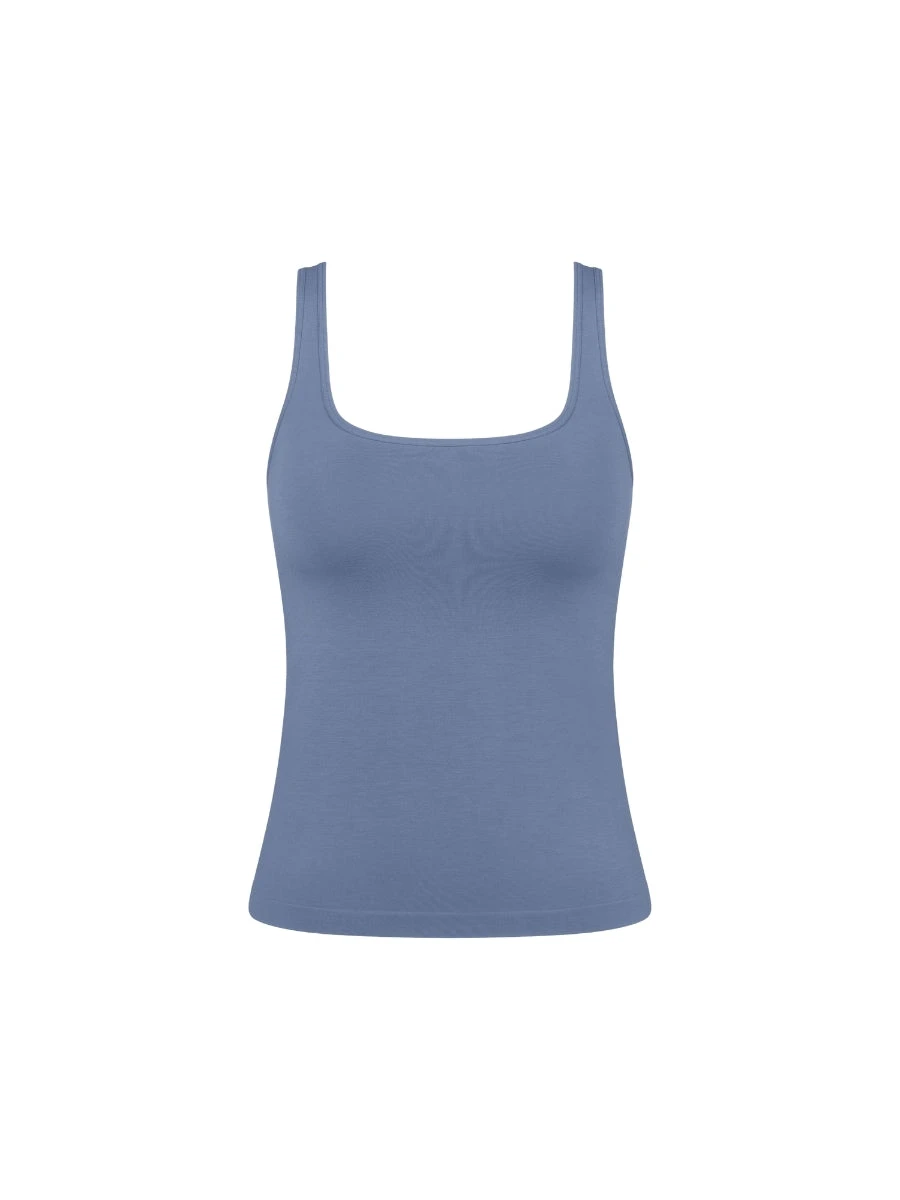 The GO Sense Tank Top in Blue Shadow features wide straps and a square neckline, designed for both style and comfort. Crafted from supersoft, seamless fabric, it offers a smooth, irritation-free fit ideal for all-day wear. Its minimalist design ensures versatility, making it a reliable layering piece or stand-alone top for expert comfort and understated elegance.