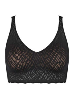 Indulge in luxury and comfort with the ZERO Feel Bliss Bralette by Sloggi. This non-wired bralette features a pullover design and a geometric mesh overlay for a flattering and comfortable fit. With removable padding, this bralette is the perfect blend of style and practicality. Elevate your lingerie game with the Black colour.