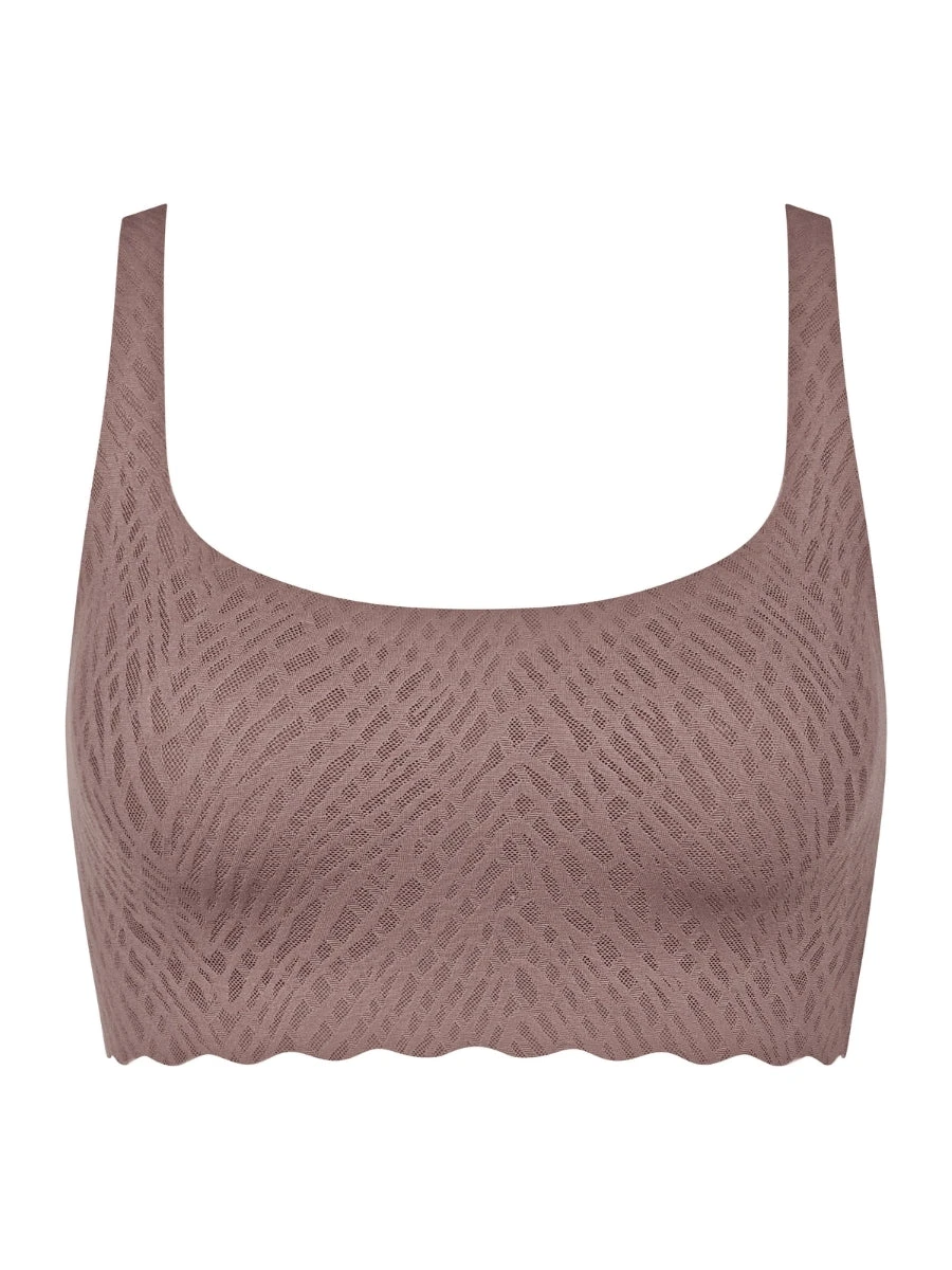 Indulge in luxurious comfort and effortless style with the ZERO Feel Bliss Top in Cacao by Sloggi. This elegant bralette features a removable padding and a delicate geometric mesh overlay, making it a versatile and chic addition to any wardrobe. Experience the ultimate sense of bliss with this premium product.