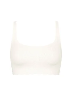 Indulge in luxurious comfort and effortless style with the ZERO Feel Bliss Top in Silk White by Sloggi. This elegant bralette features a removable padding and a delicate geometric mesh overlay, making it a versatile and chic addition to any wardrobe. Experience the ultimate sense of bliss with this premium product.