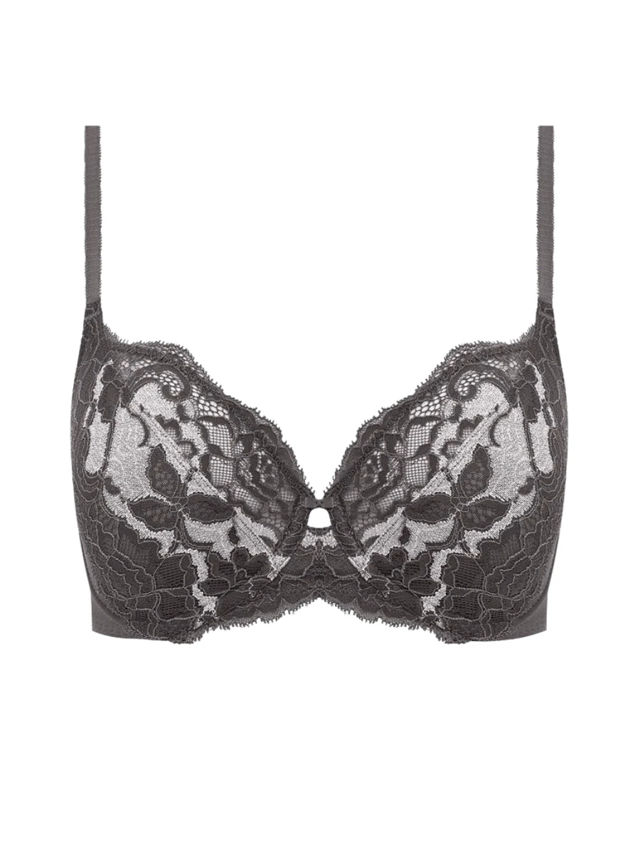 Indulge in luxury with the Florilege Underwired Bra in Ink Flower. Its three-section wired cups provide a natural shape, while the stretch lace top and bottom cups offer a perfect fit. The intricate dropped centre front and lace details add a touch of elegance. Plus, the fully adjustable straps and scoop back offer optimum support.Â