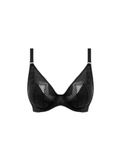 Indulge in luxury with the Sensu Lace Plunge Bra in Black by Wacoal. Featuring a fan motif lace, deep plunge, and high apex, this bra offers impeccable silhouette and support. The convertible straps and soft spacer fabric add versatility and comfort to your everyday wear.